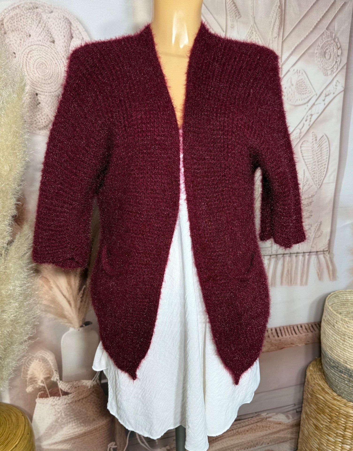 Gilet court bordeaux toucher Mohair douceur ++++ du 34 au 40 et même +