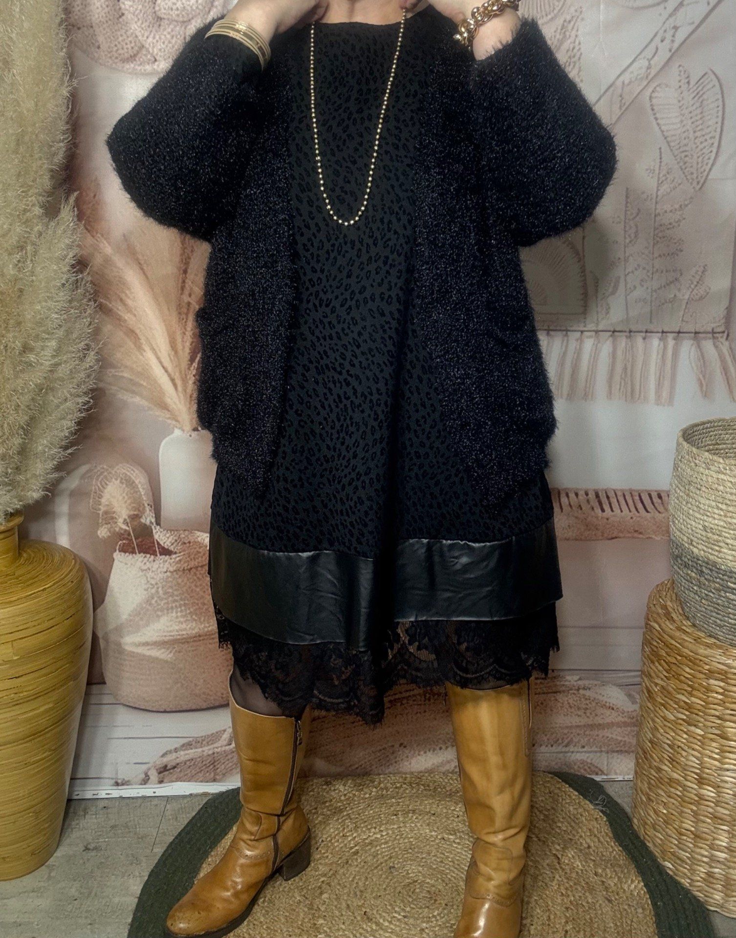 Gilet court noir toucher Mohair douceur ++++ du 34 au 40 et même +