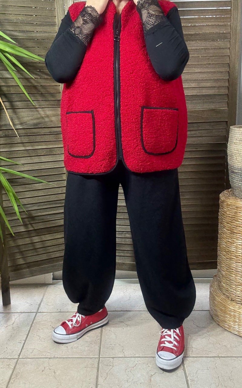 Gilet sans manches Sherpa rouge doublé suédine du 38 au 46/48 et même +