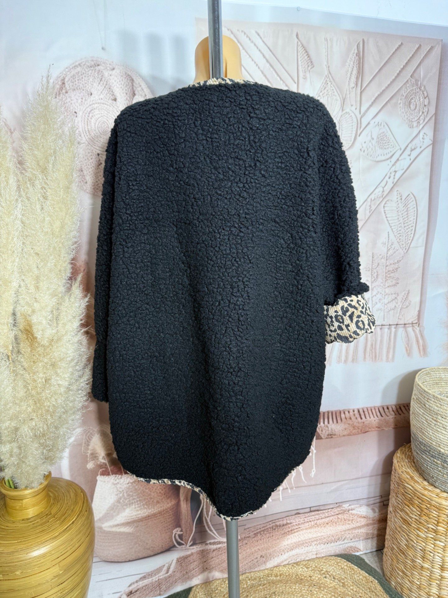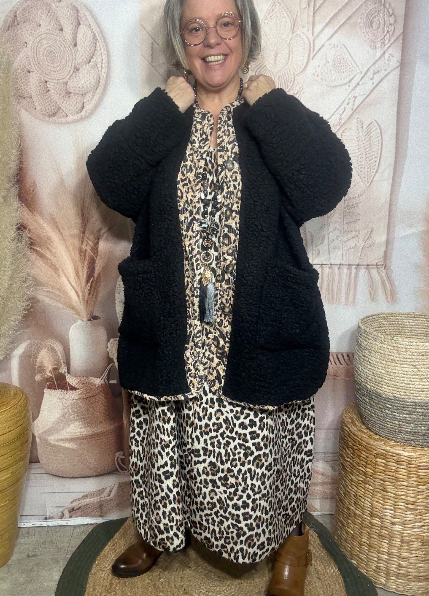 Gilet-veste moumoute Sherpa noire et suédine Léopard du 40 au 52/54 et même +