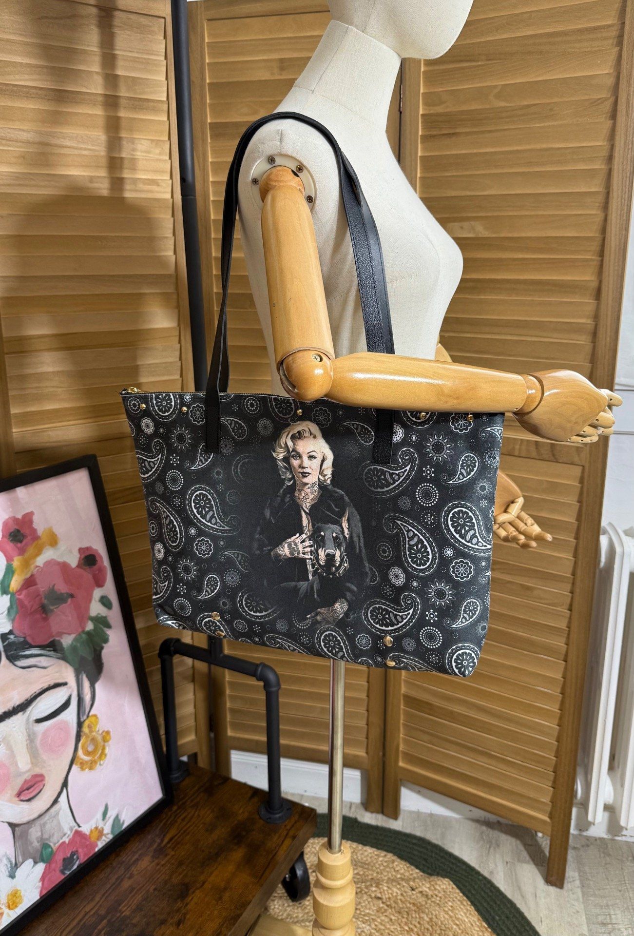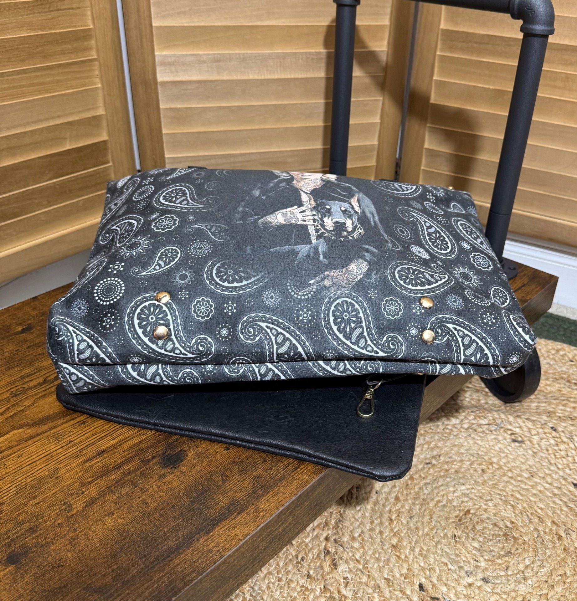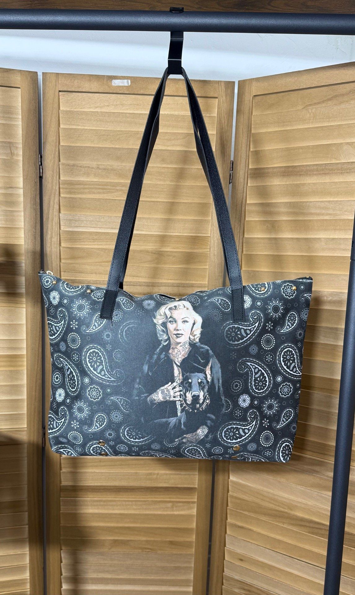 Grand sac besace + pochette suédine & simili-cuir Marylin Monroe & Doberman qualité ++++