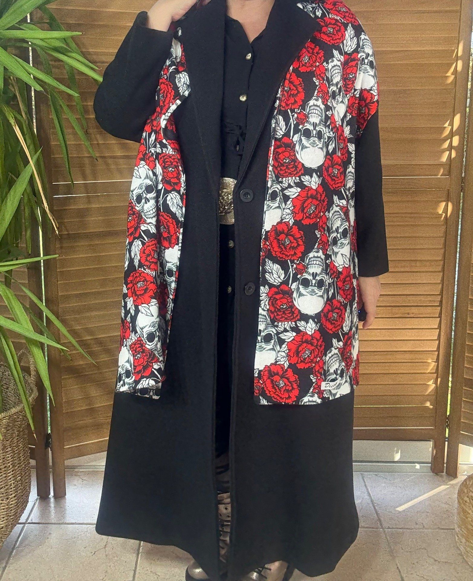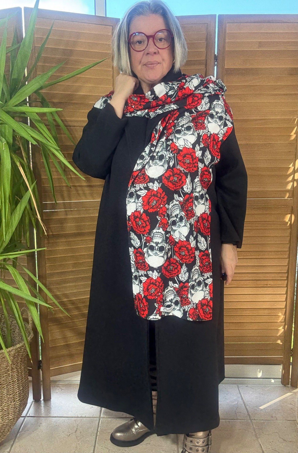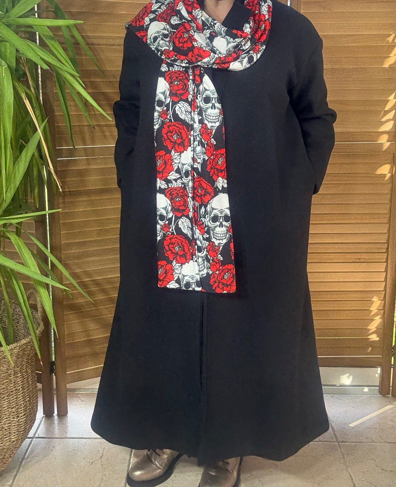 Grande écharpe sans laine double épaisseur All over Skulls & Red Flowers douceur ++