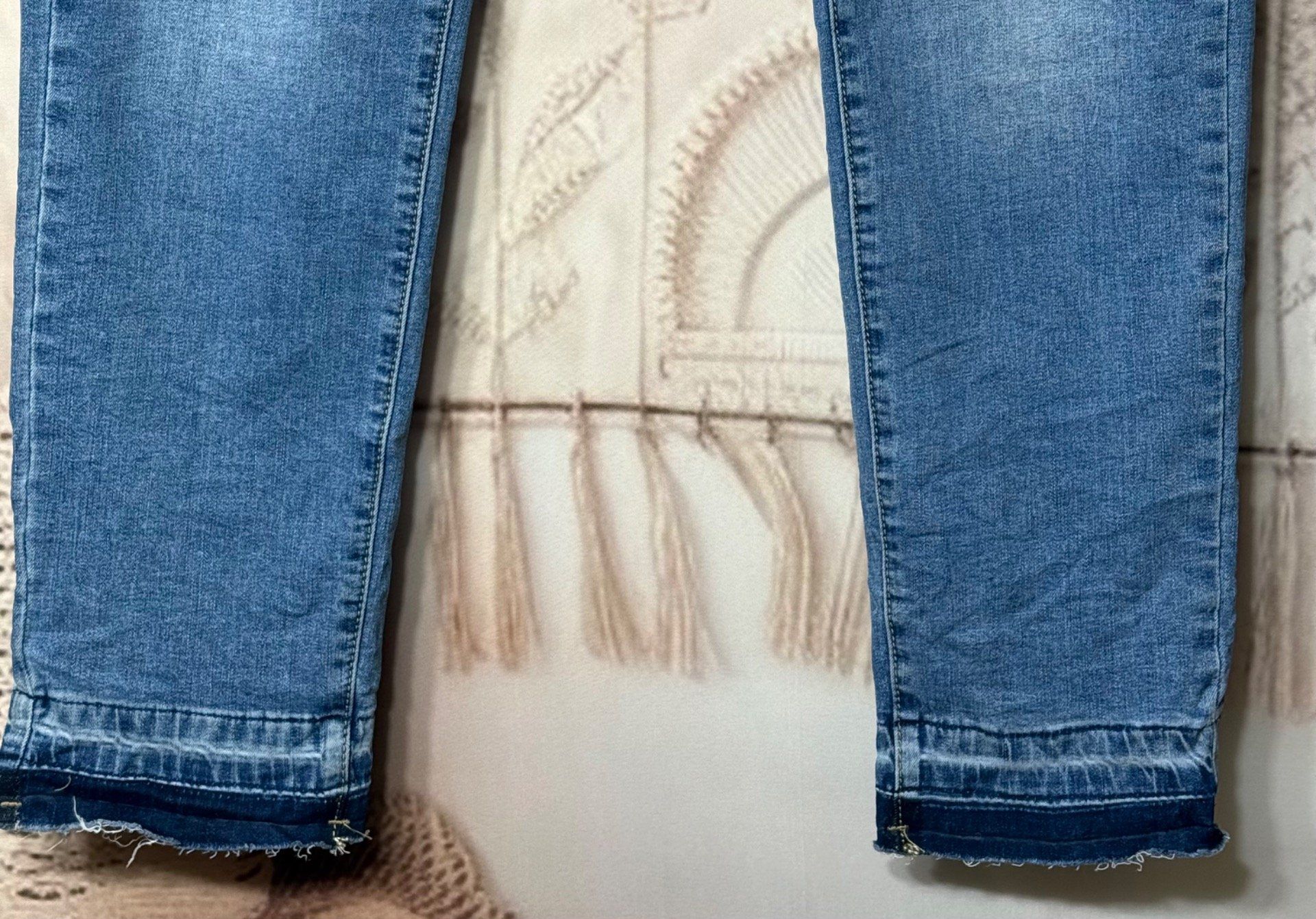 Jeans stone délavé skinny bas effiloché boutons argentés stretch ++++