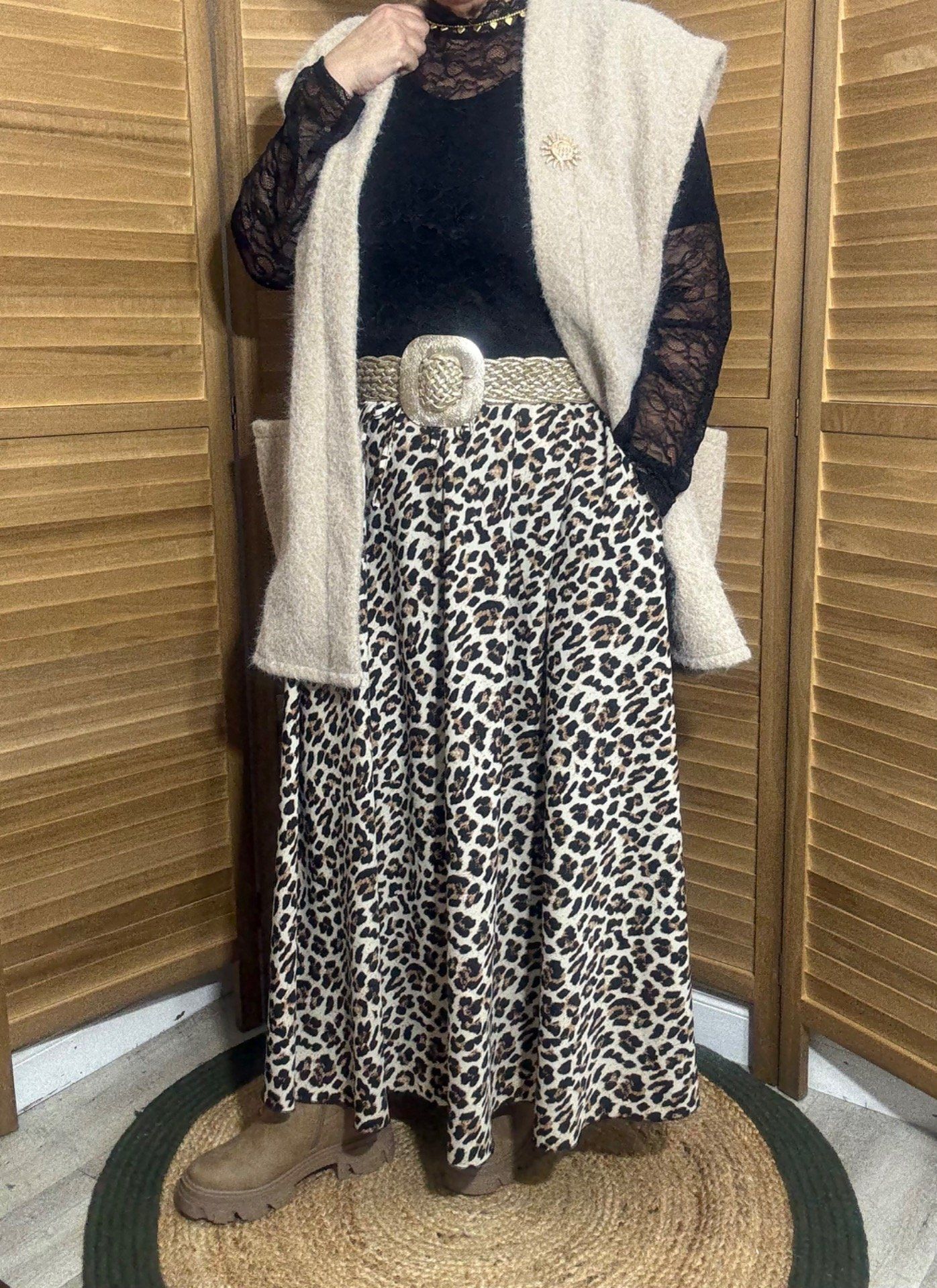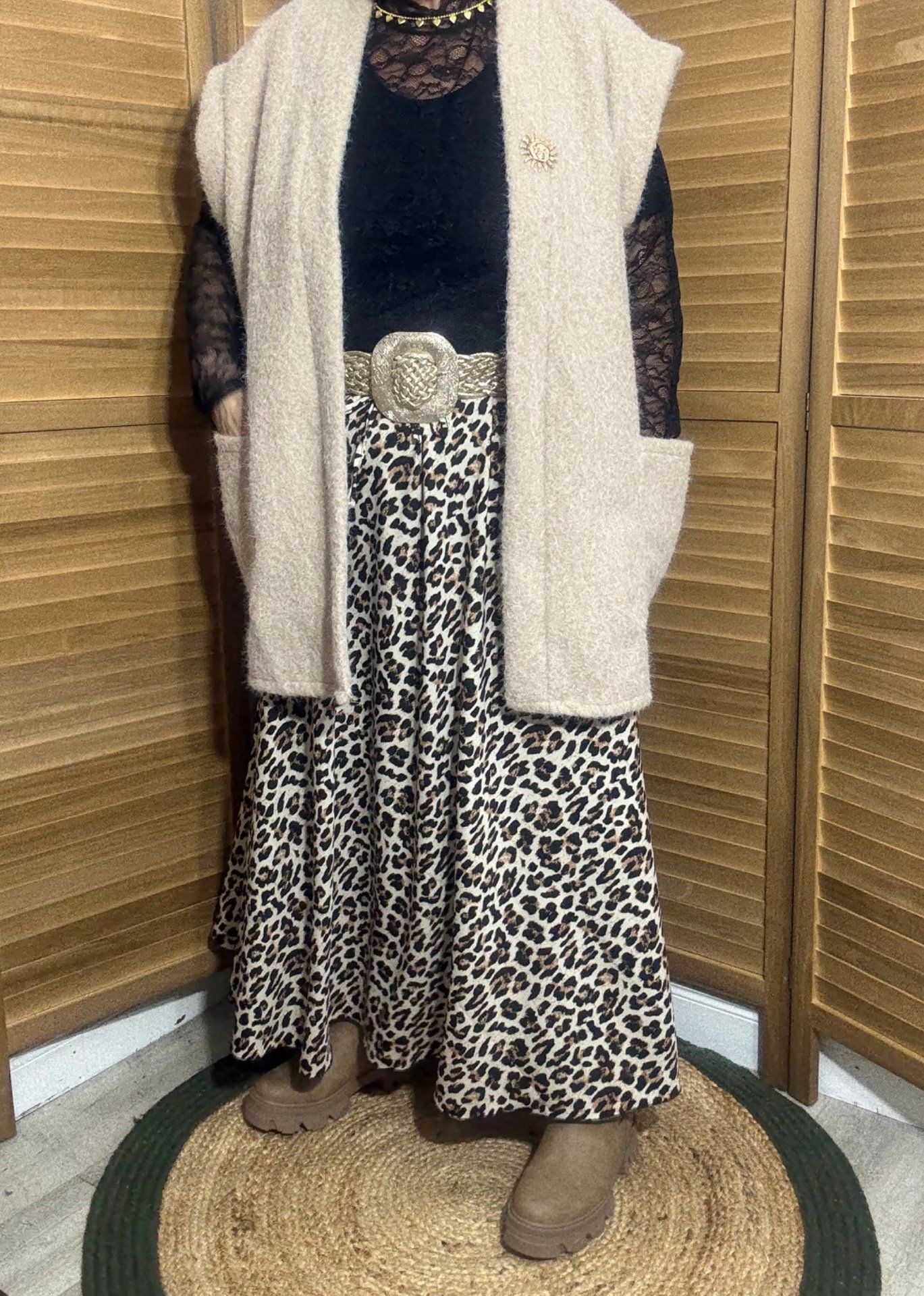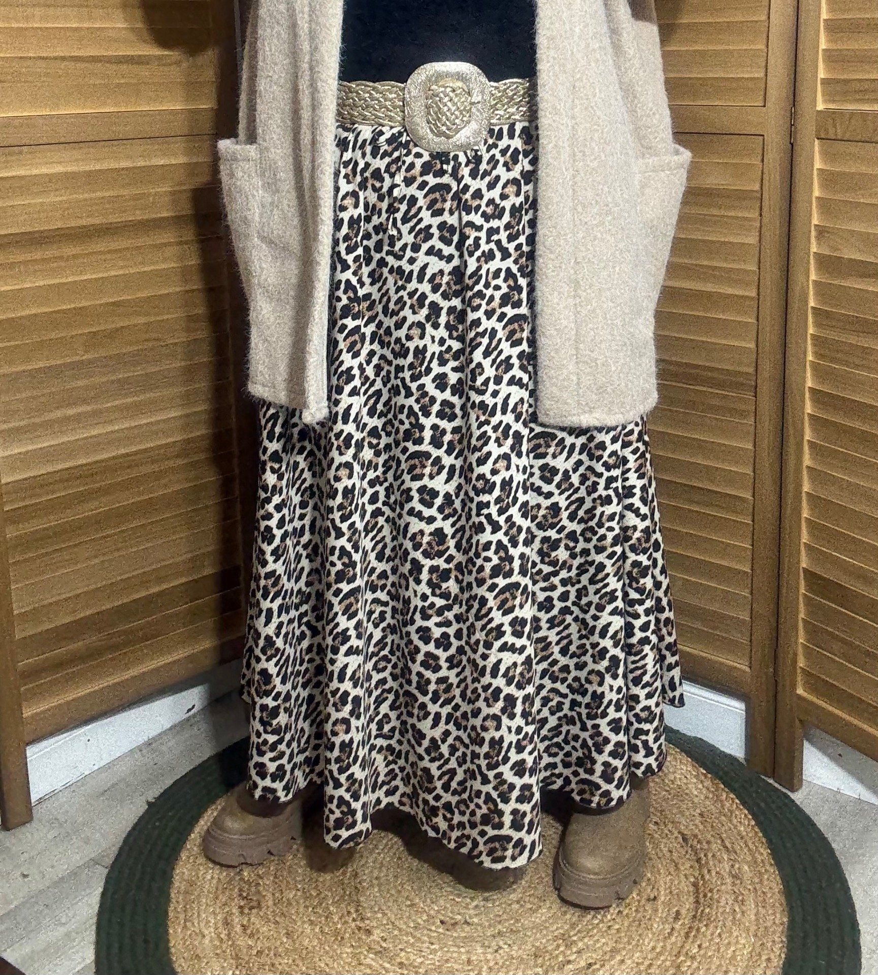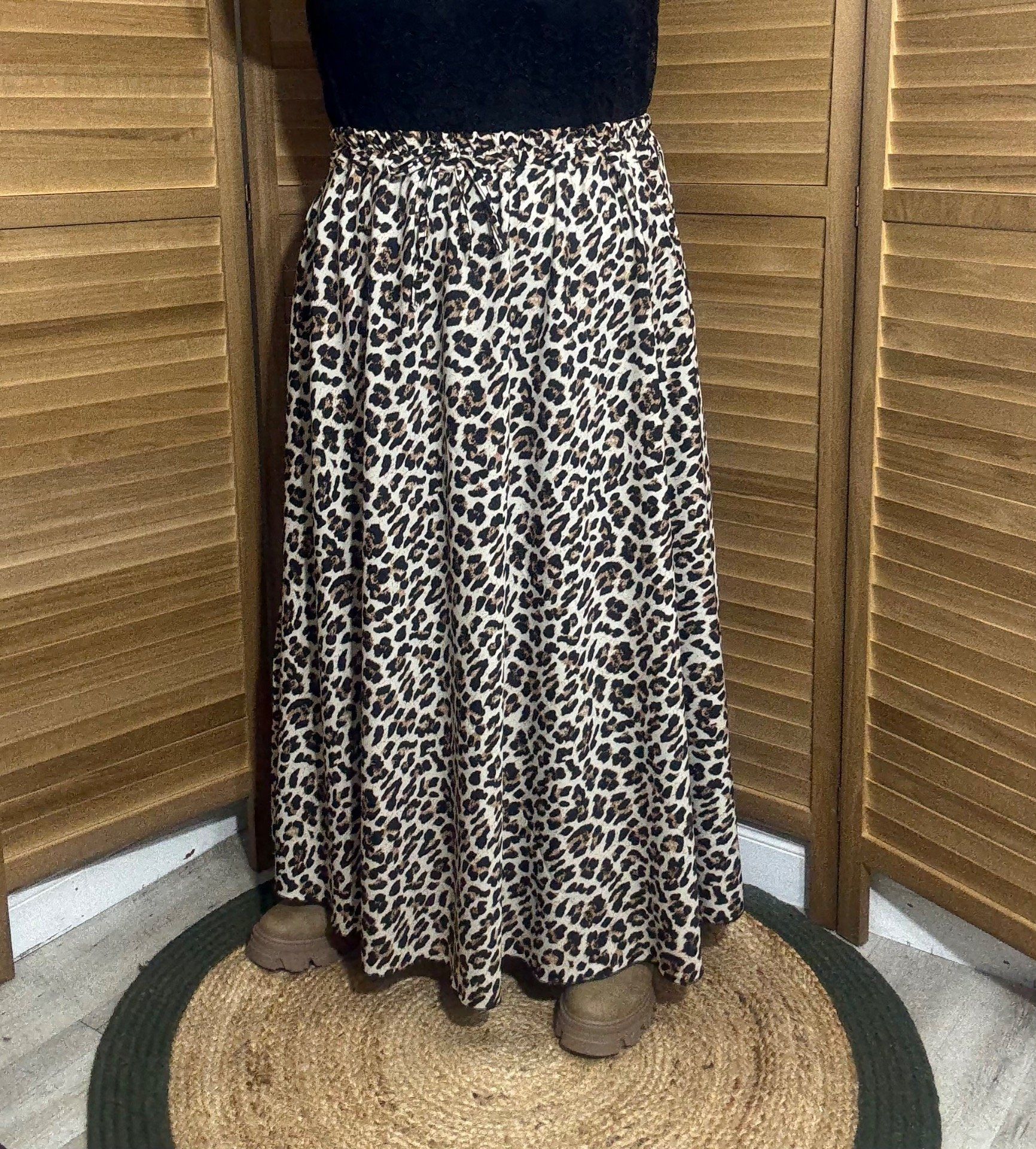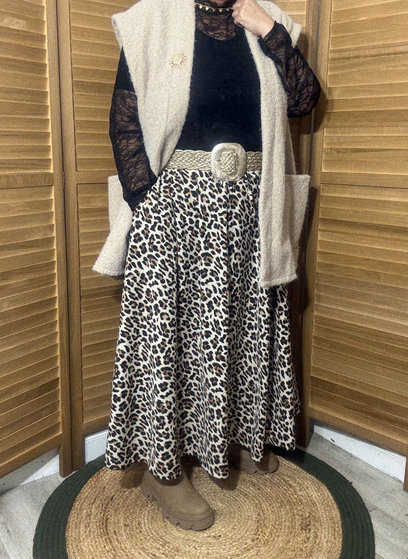Jupe ample longue Léopard caramel beige noir du 40 au 52
