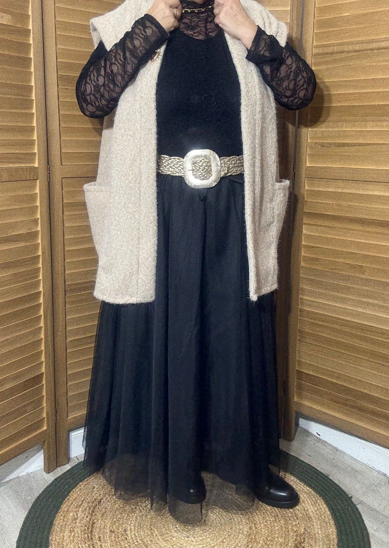Jupe ample longue vaporeuse en tulle noir du 42 au 50/52