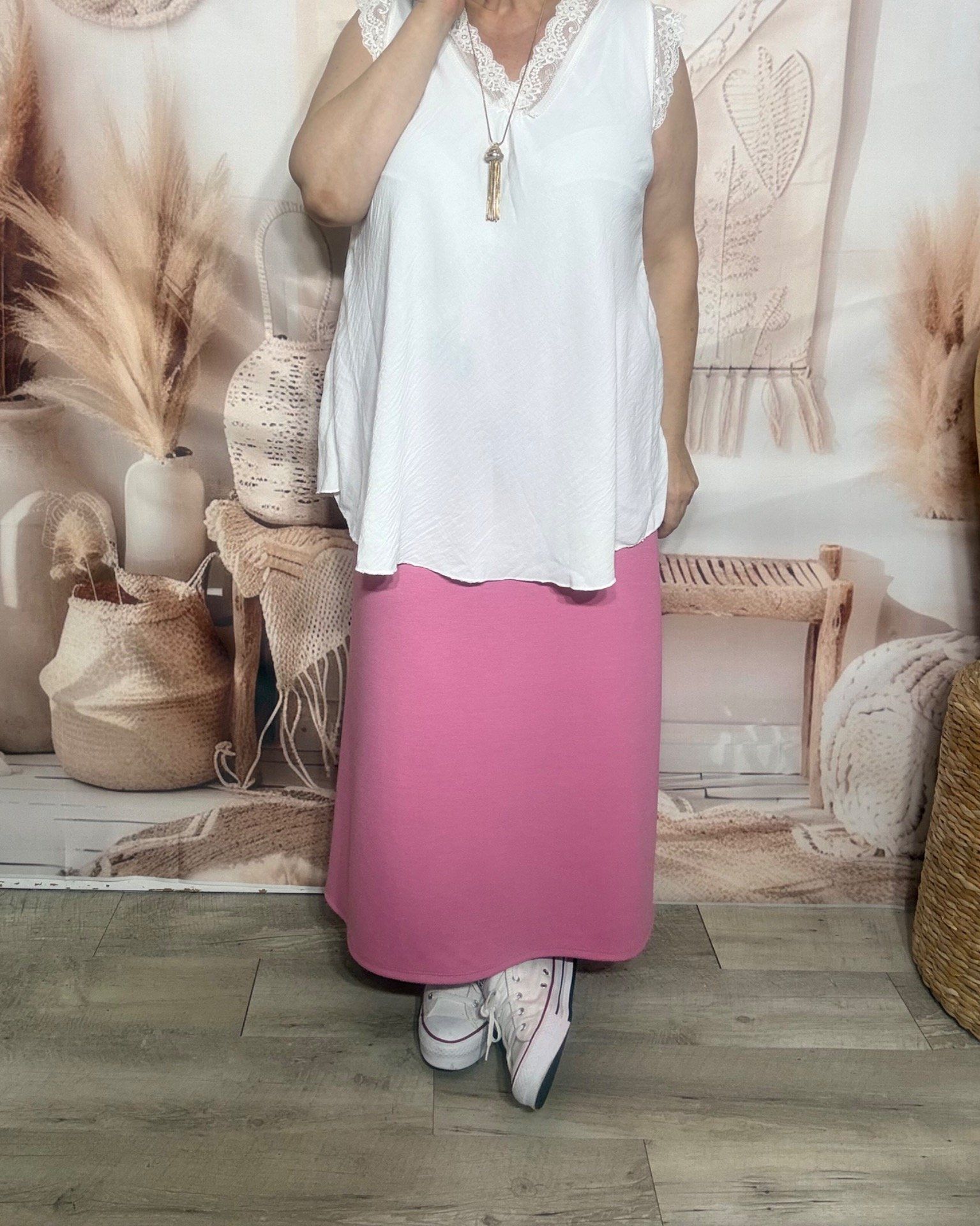 Jupe ample trapèze longue Rose Pivoine taille réglable douceur +++