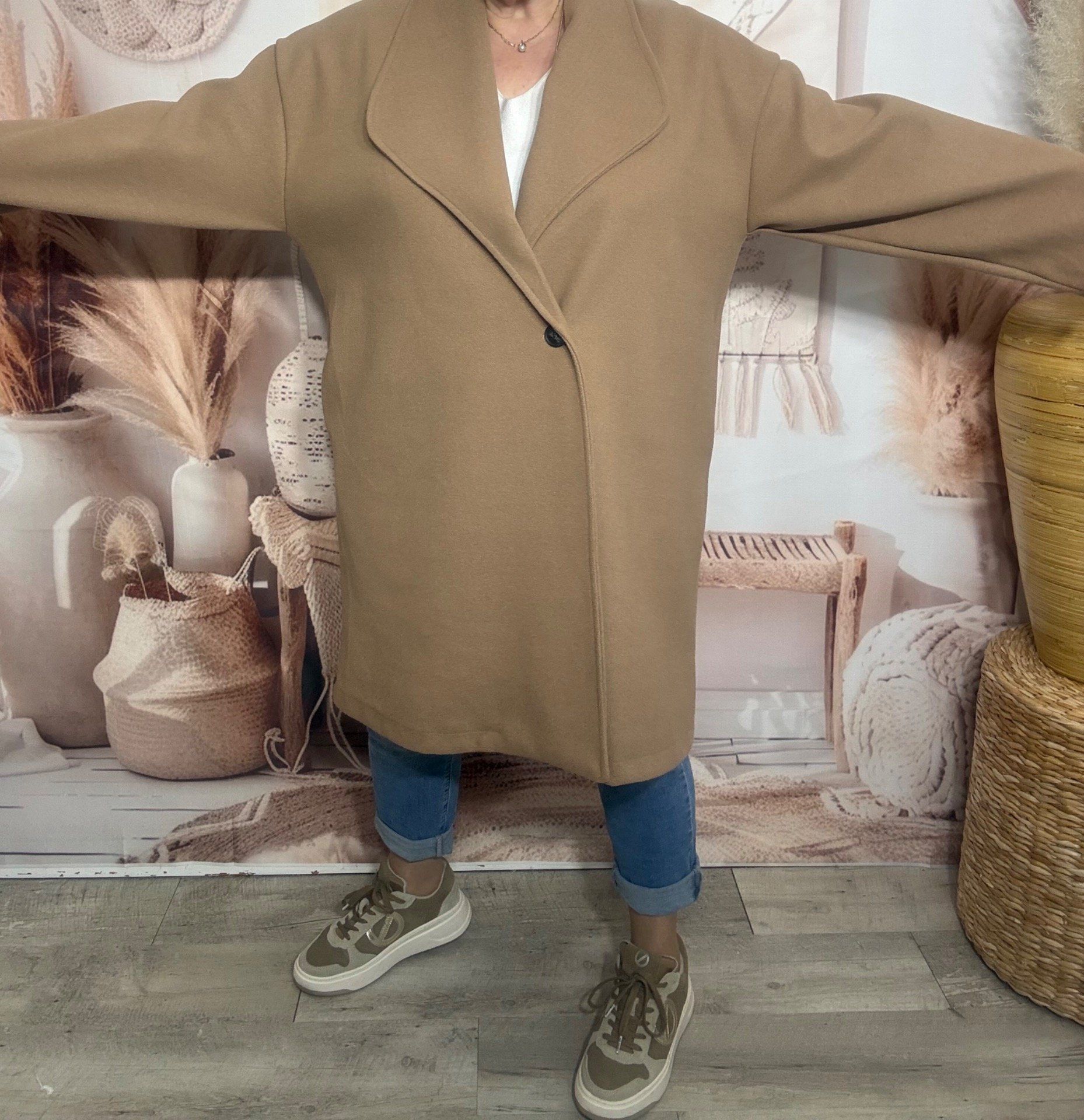 Manteau de printemps mi-long oversize beige réglable 2 boutons douceur +++ du 40 au 50 et même +