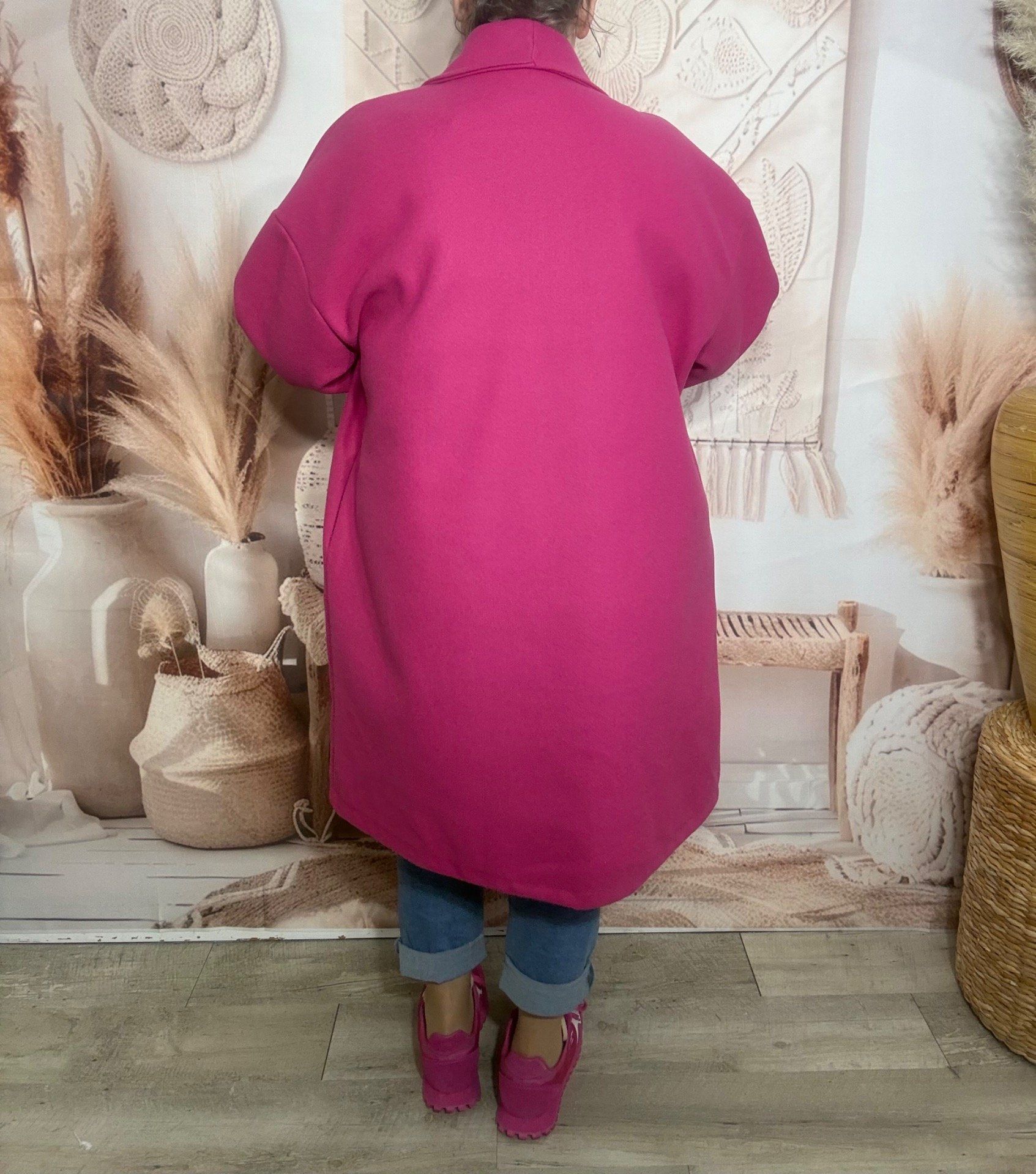 Manteau de printemps mi-long oversize Fuschia réglable 2 boutons douceur +++