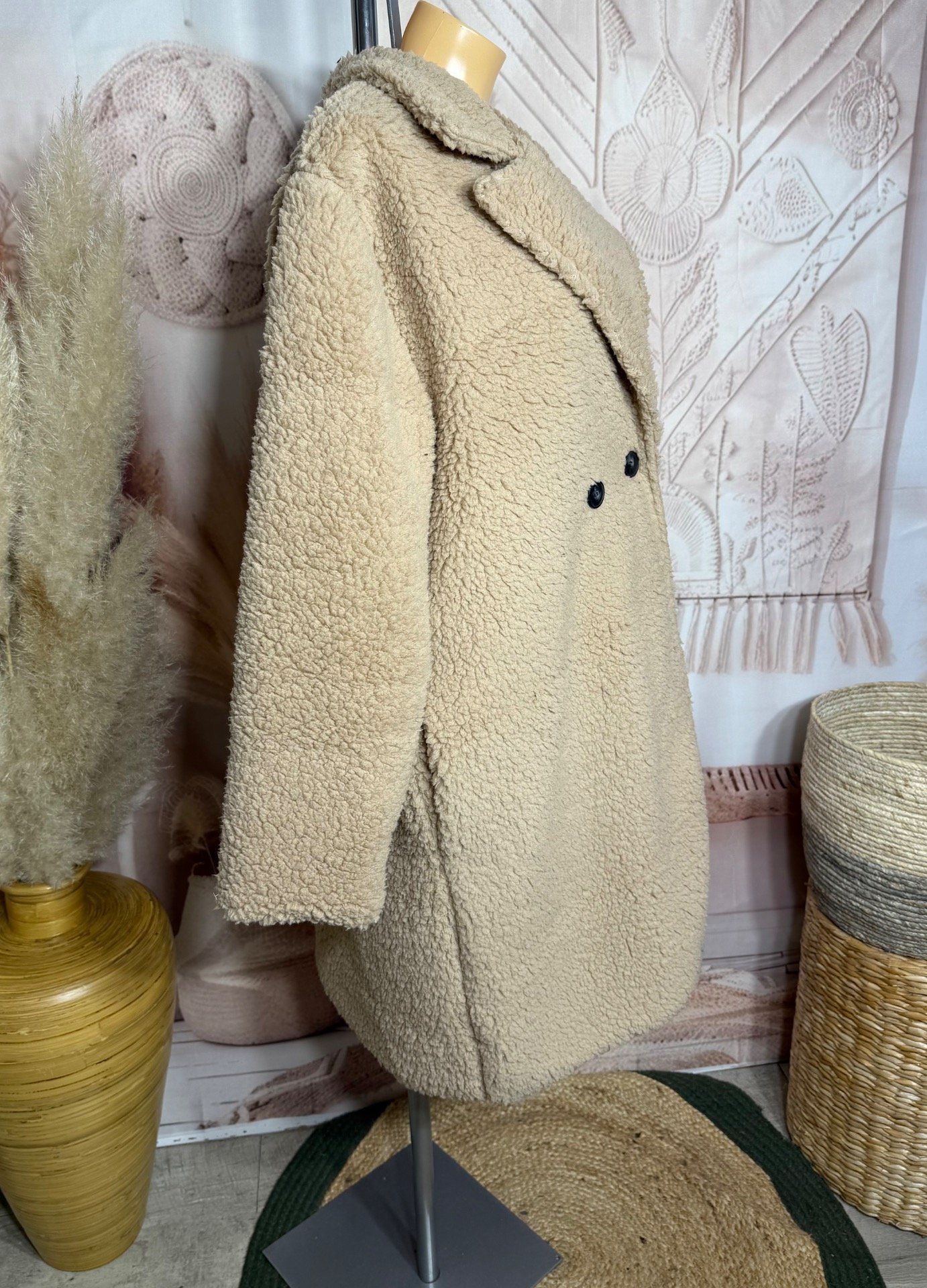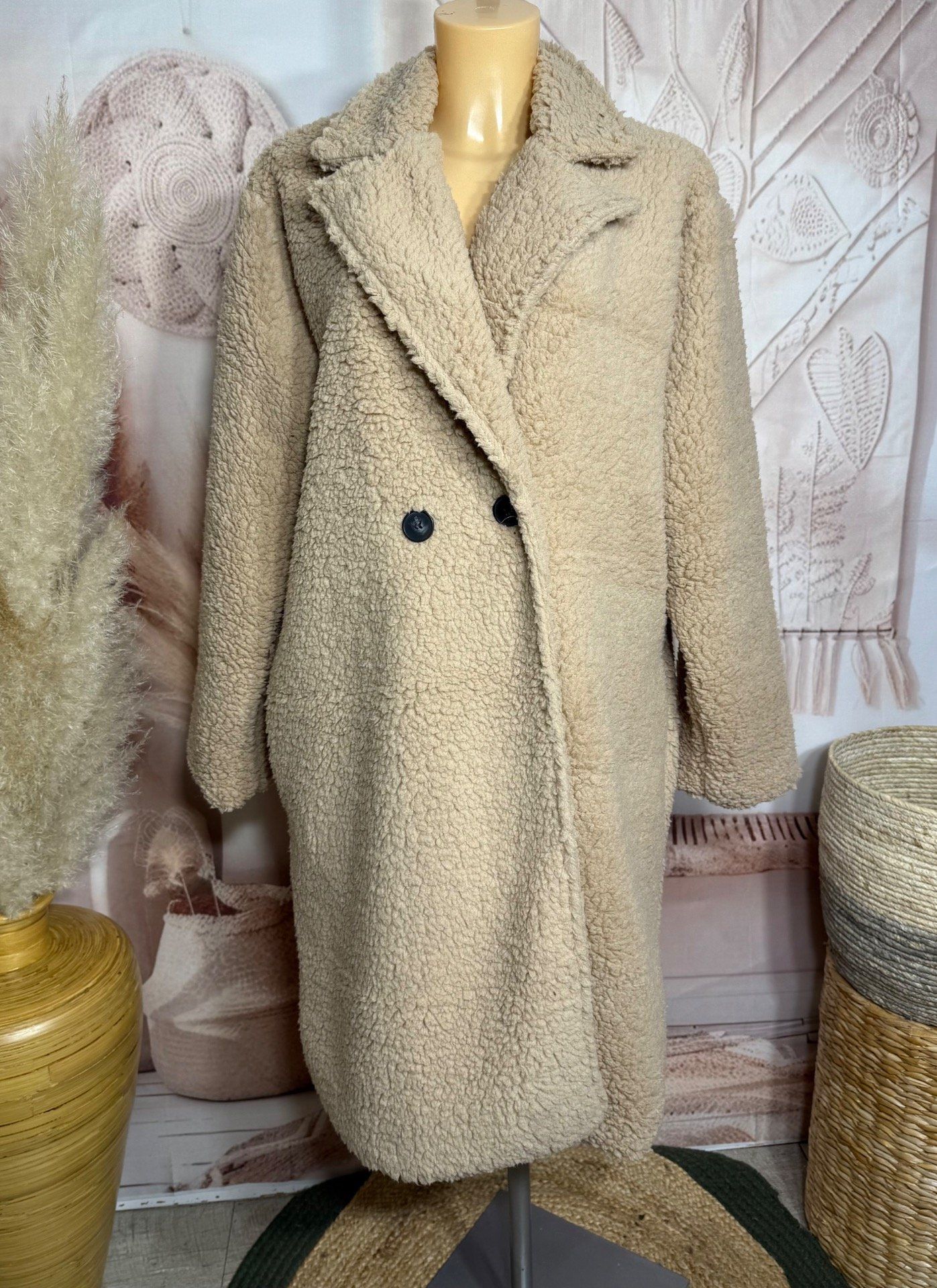 Manteau droit mi-long tout doublé Teddy Beige clair douceur +++++ du 40 au 50 et même +