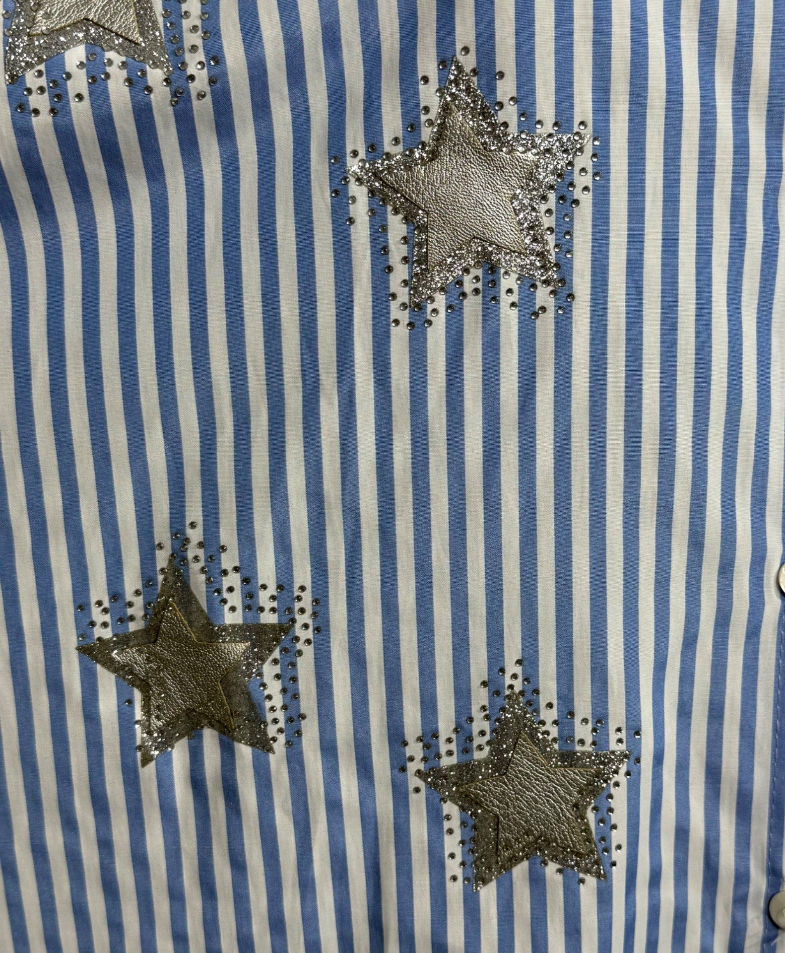 Maxi-chemise rayée bleu ciel & blanc Étoiles cuir argenté et strass brillants