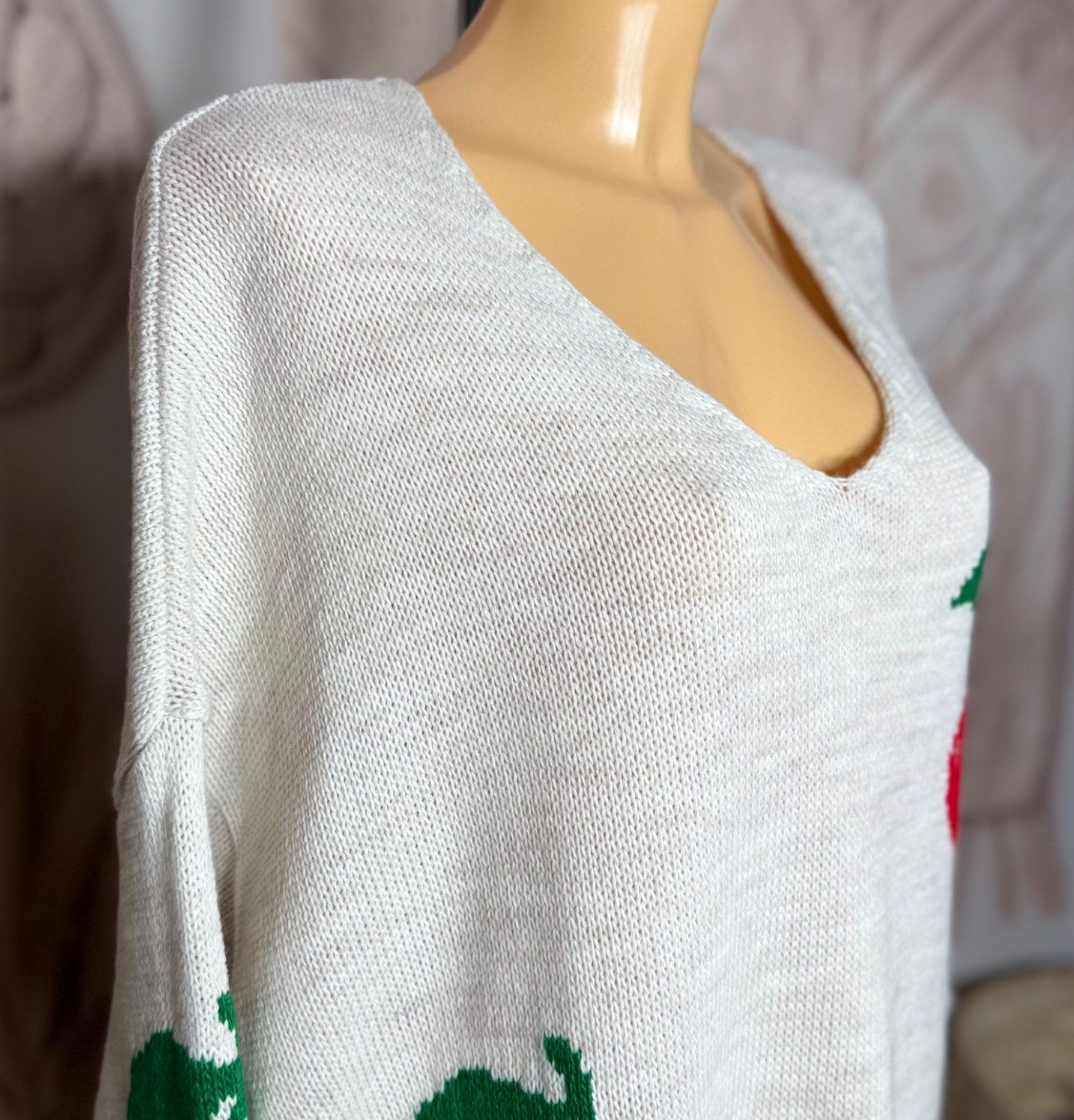 Maxi-pull trapèze sans laine beige clair chiné Mes jolies cerises douceur +++