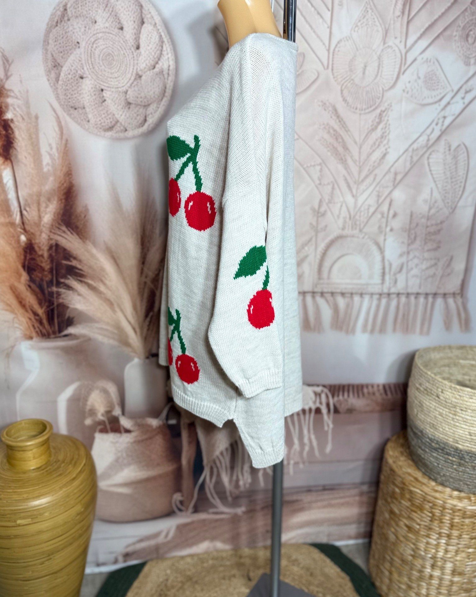 Maxi-pull trapèze sans laine beige clair chiné Mes jolies cerises douceur +++ du 40 au 52