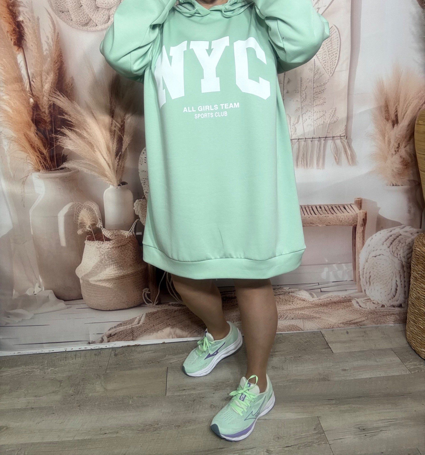 Maxi-sweat à capuche vert Menthe ou Robe-sweat sportswear confort +++