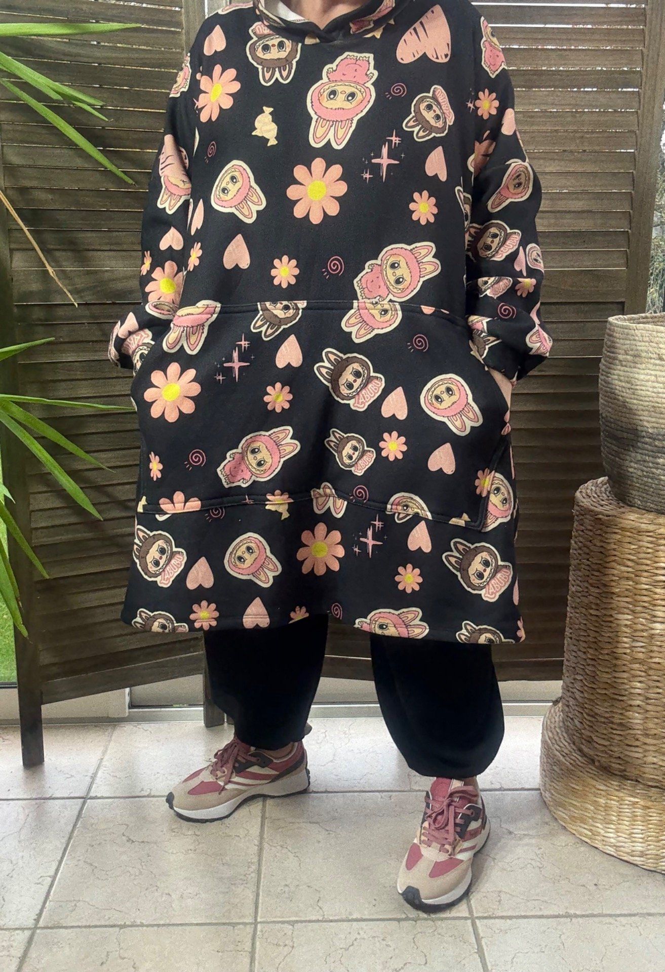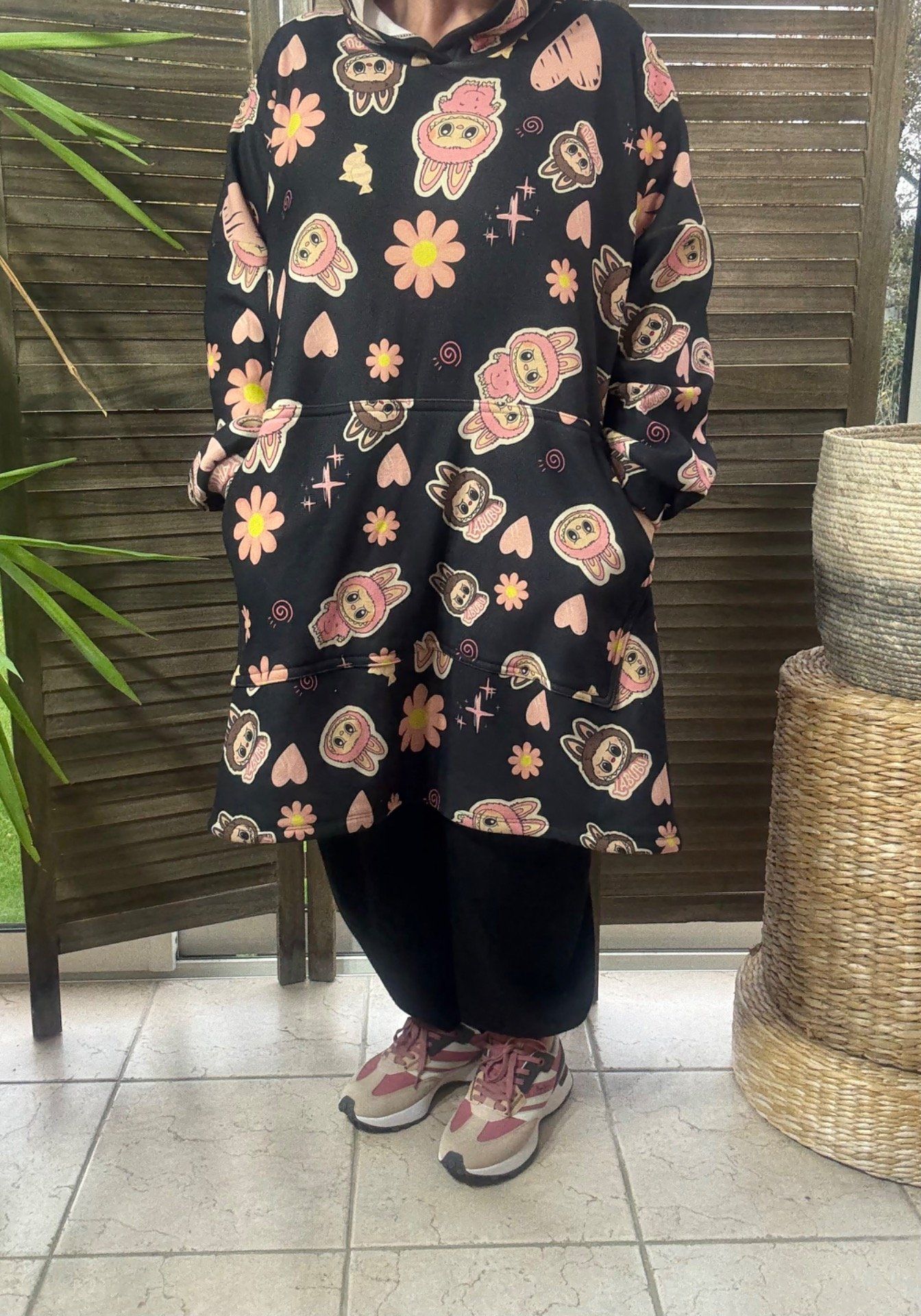 Maxi-sweat polaire à capuche noir In Love with Labubu douceur +++++
