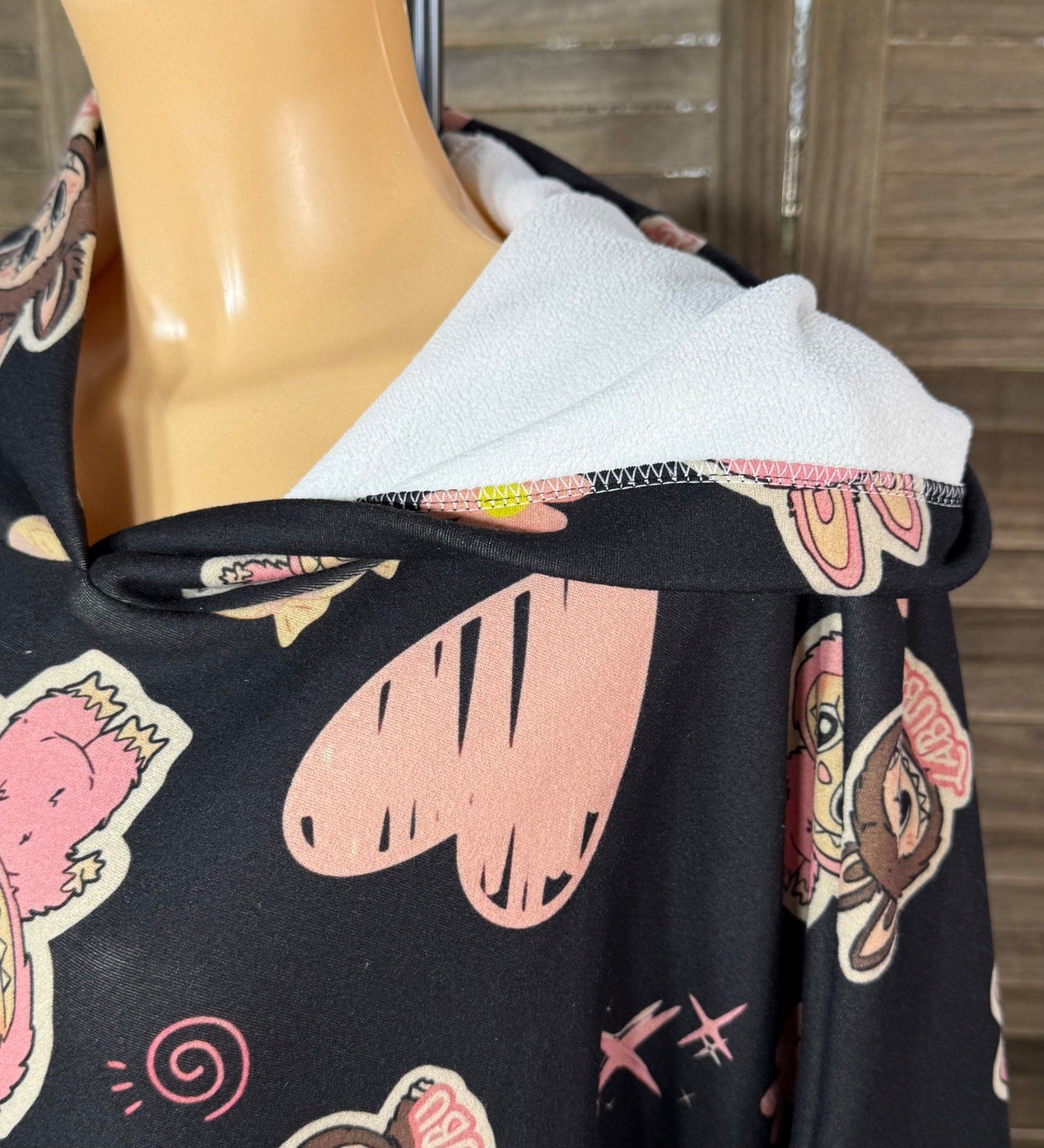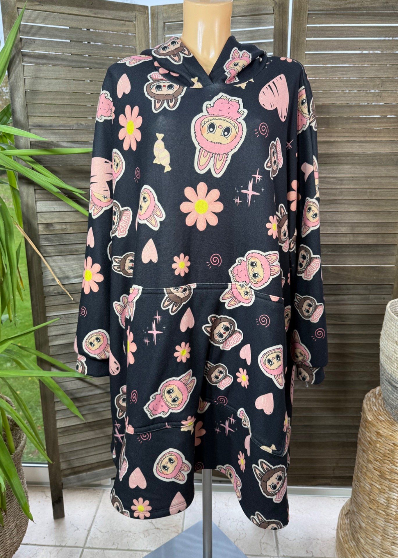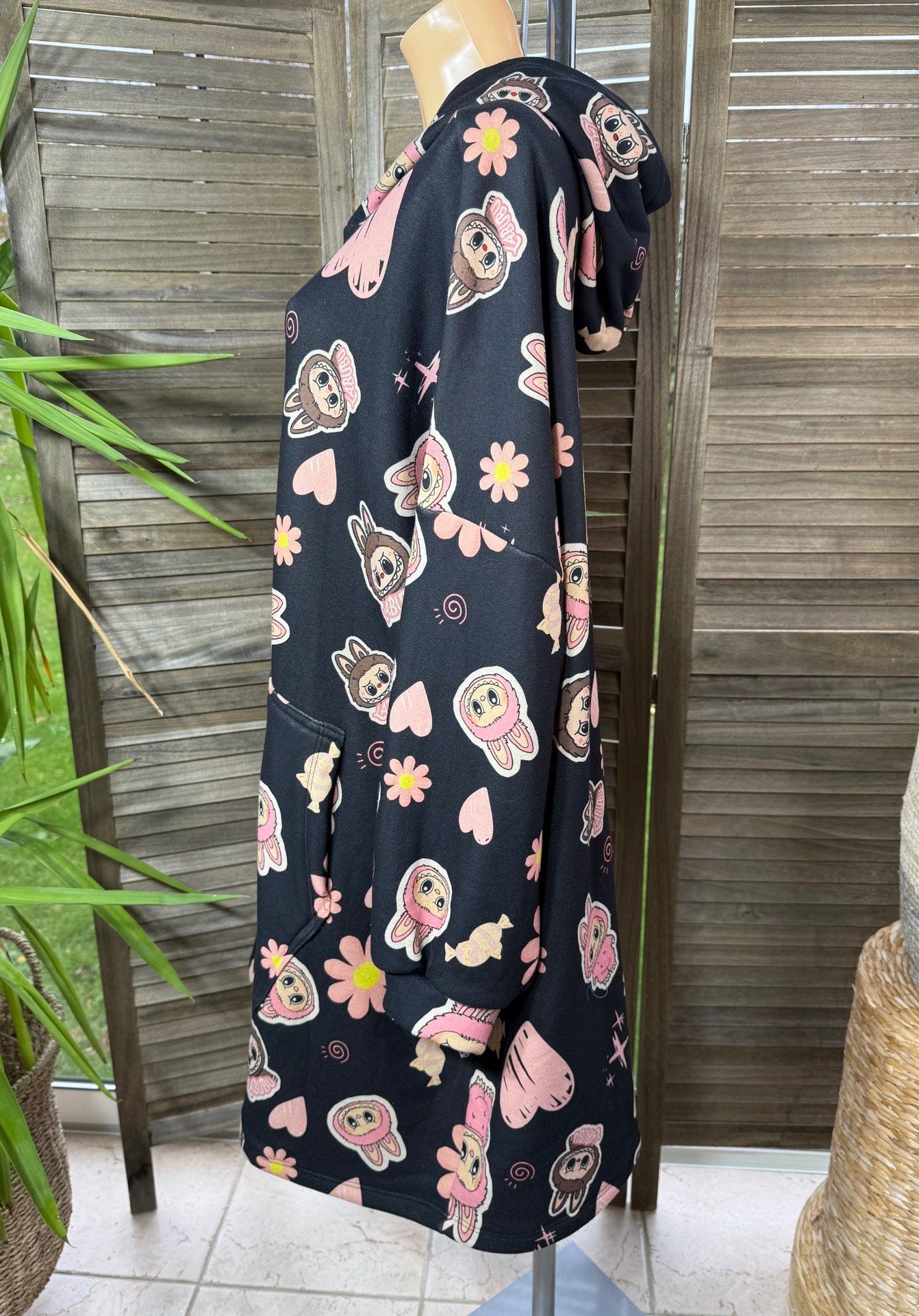 Maxi-sweat polaire à capuche noir In Love with Labubu douceur +++++ du 42 au 58/60