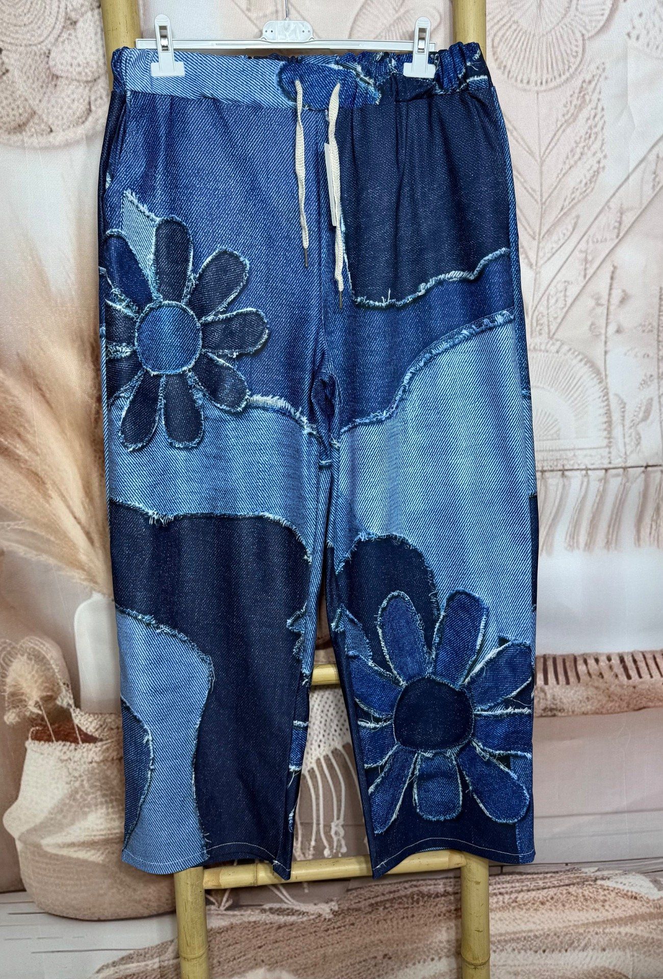 Panta-jogg effet jeans délavé Patchwork Hippie Spirit Fleurs stretch ++++