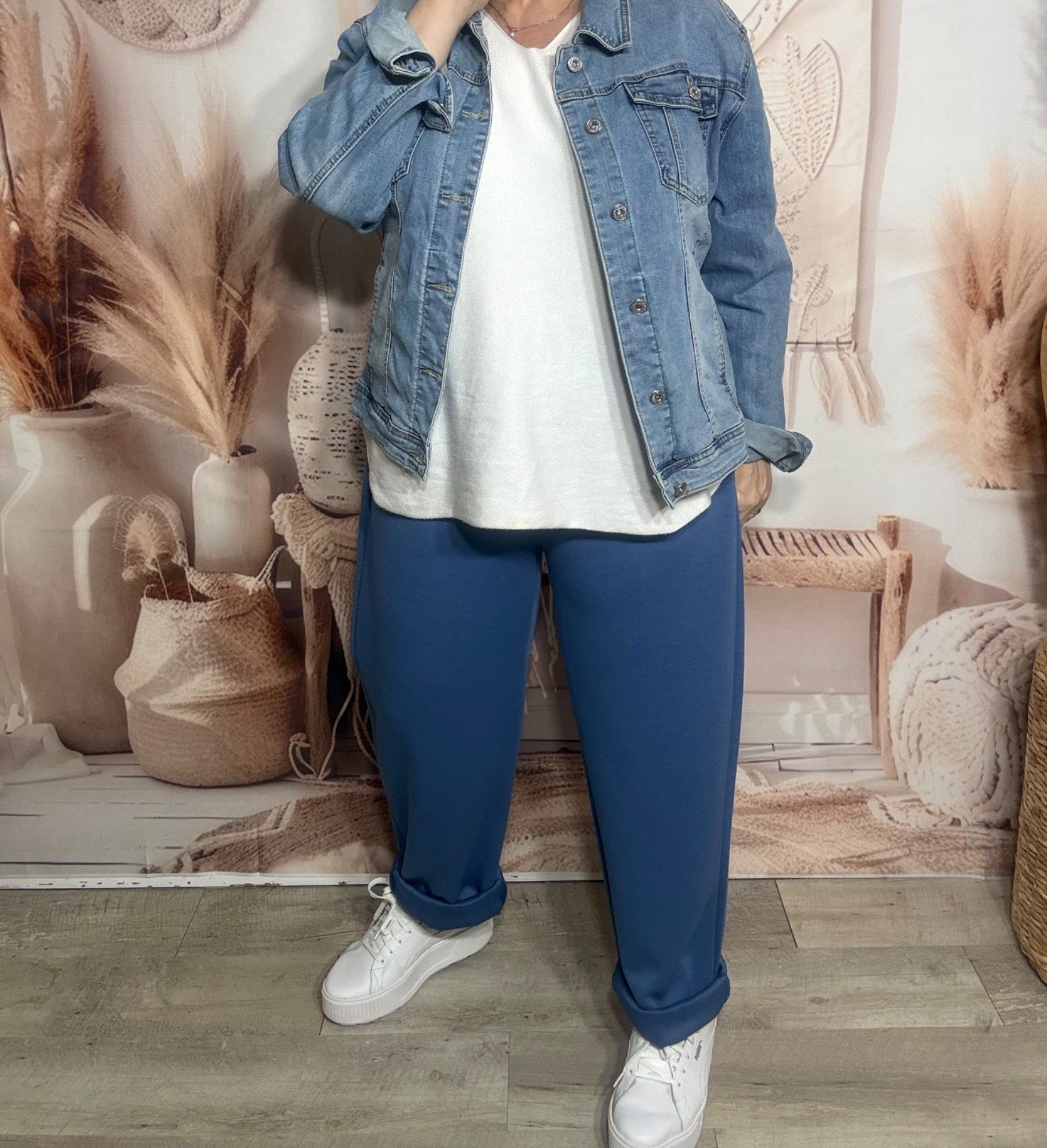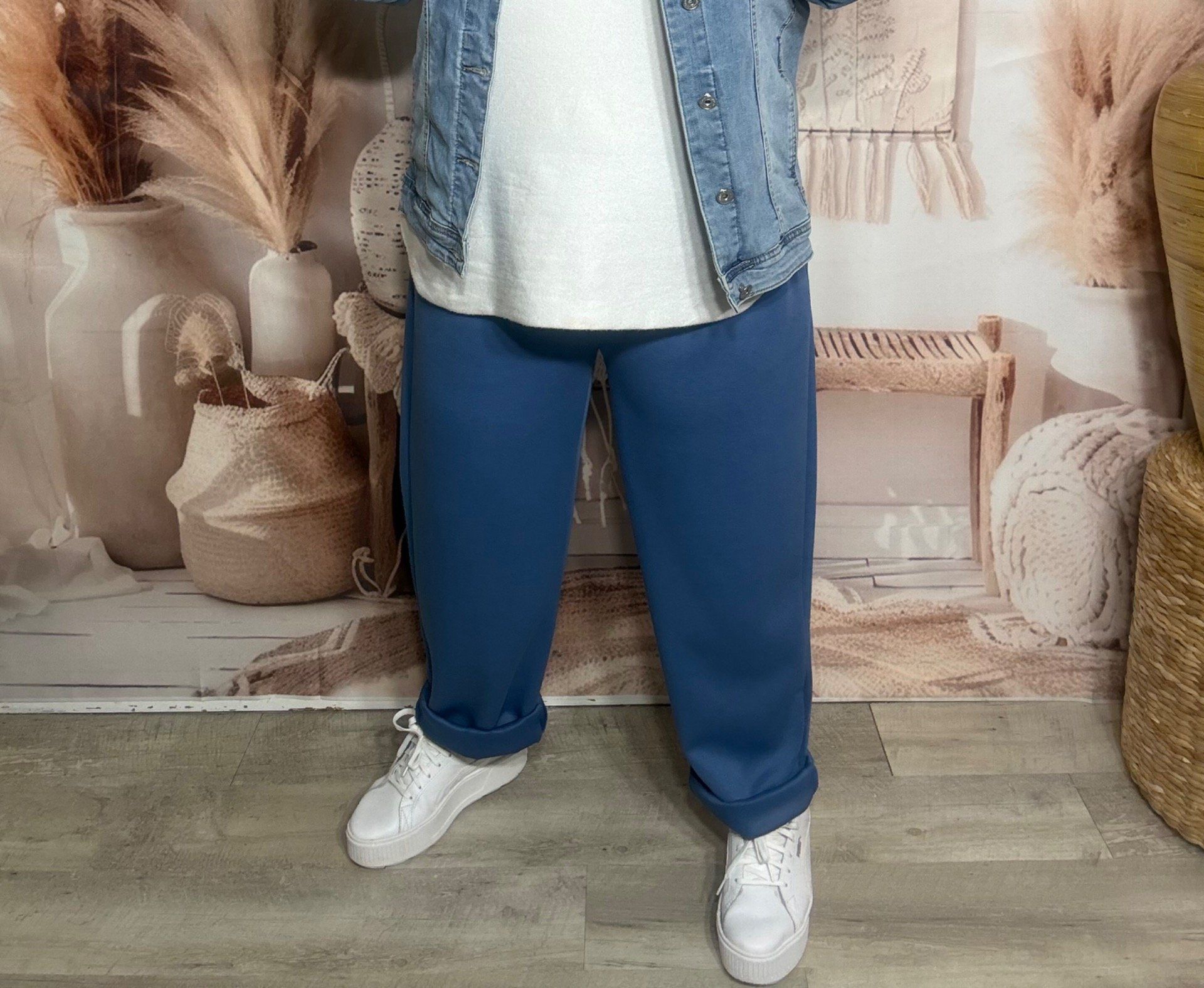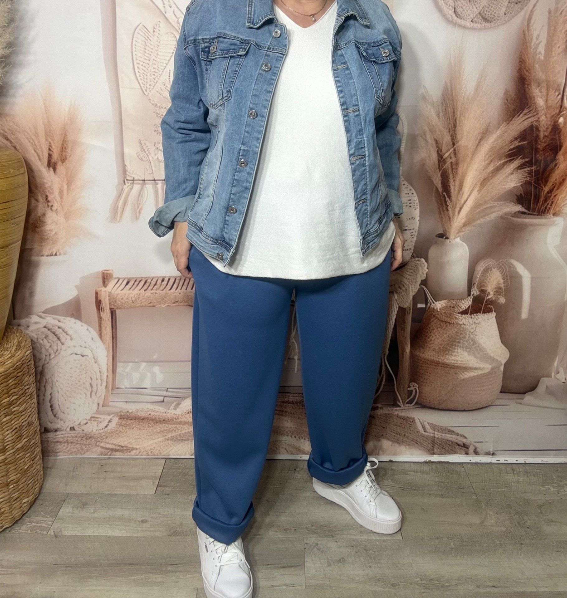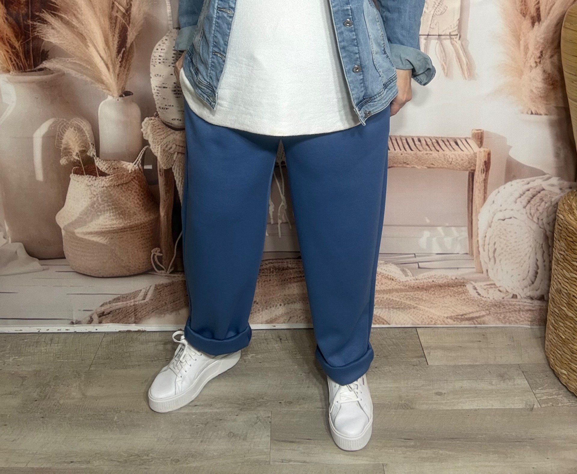 pantalon façon jogg bleu jeans brut boutons dorés + ceinture confort ++++ du 38 au 50