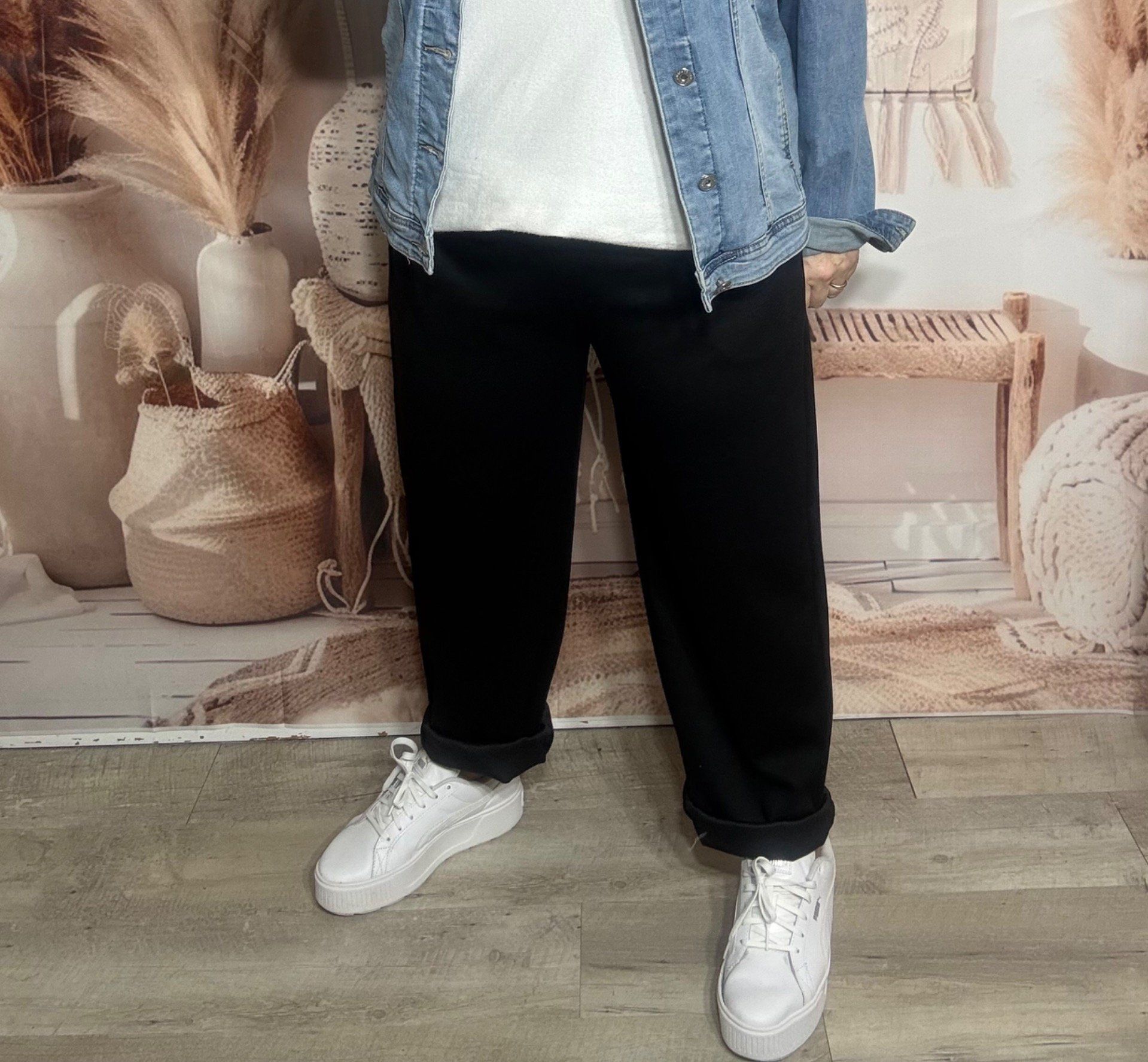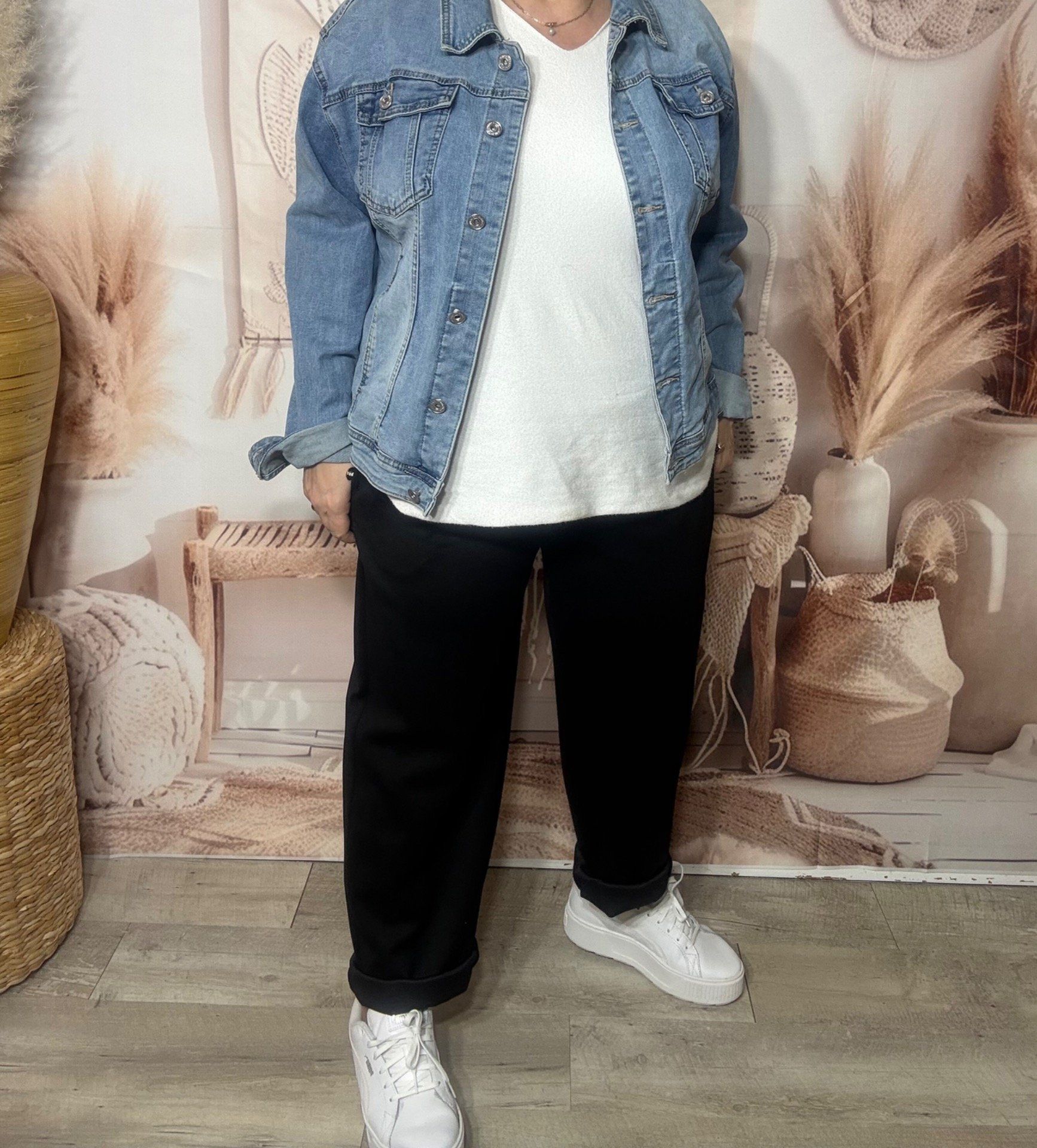 pantalon façon jogg noir boutons dorés + ceinture confort ++++ du 38 au 50
