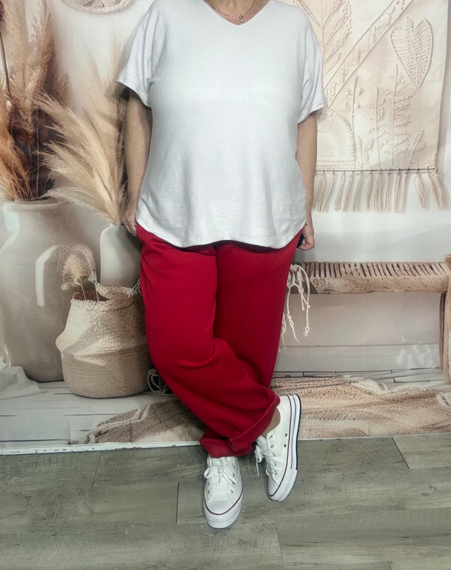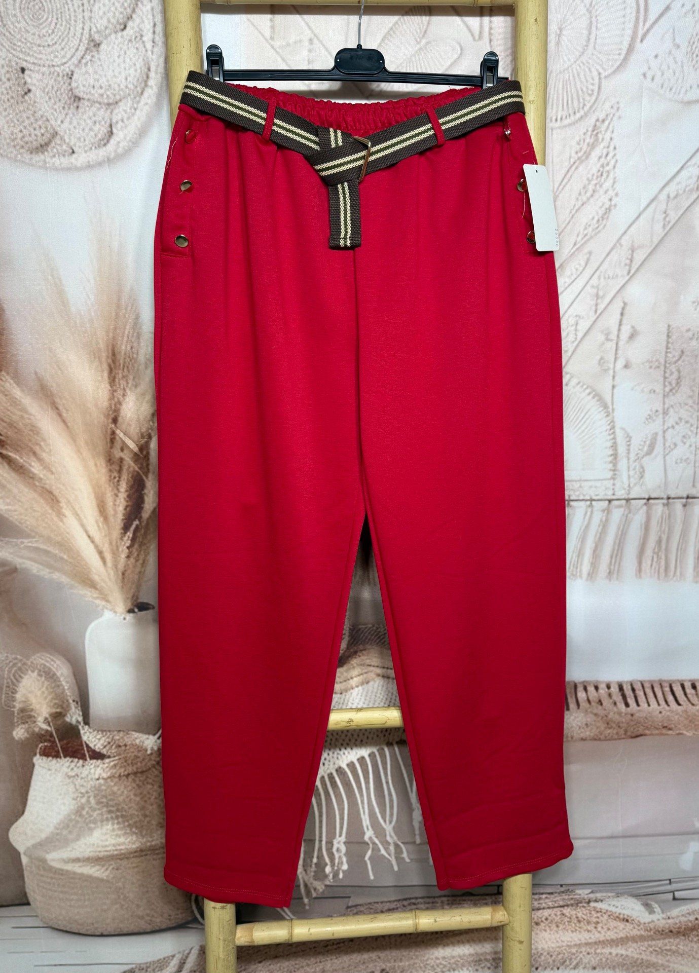 pantalon façon jogg rouge boutons dorés + ceinture confort ++++ du 38 au 50
