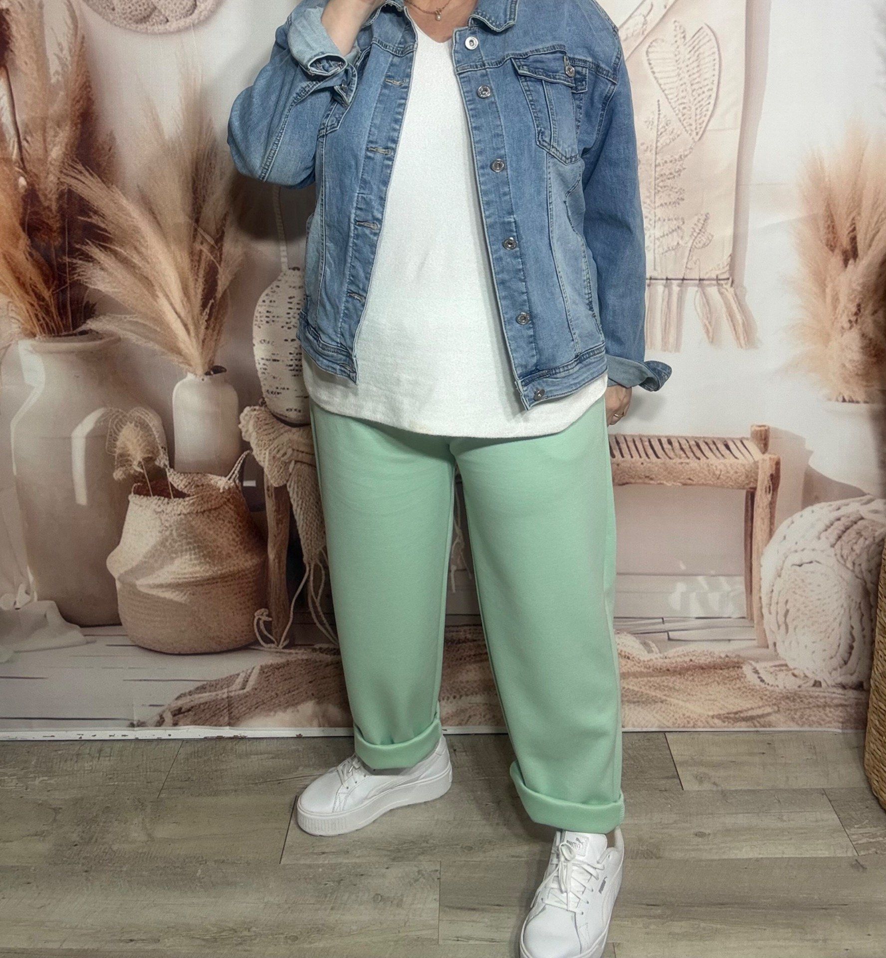 pantalon façon jogg vert d'eau boutons dorés + ceinture confort ++++ du 38 au 50
