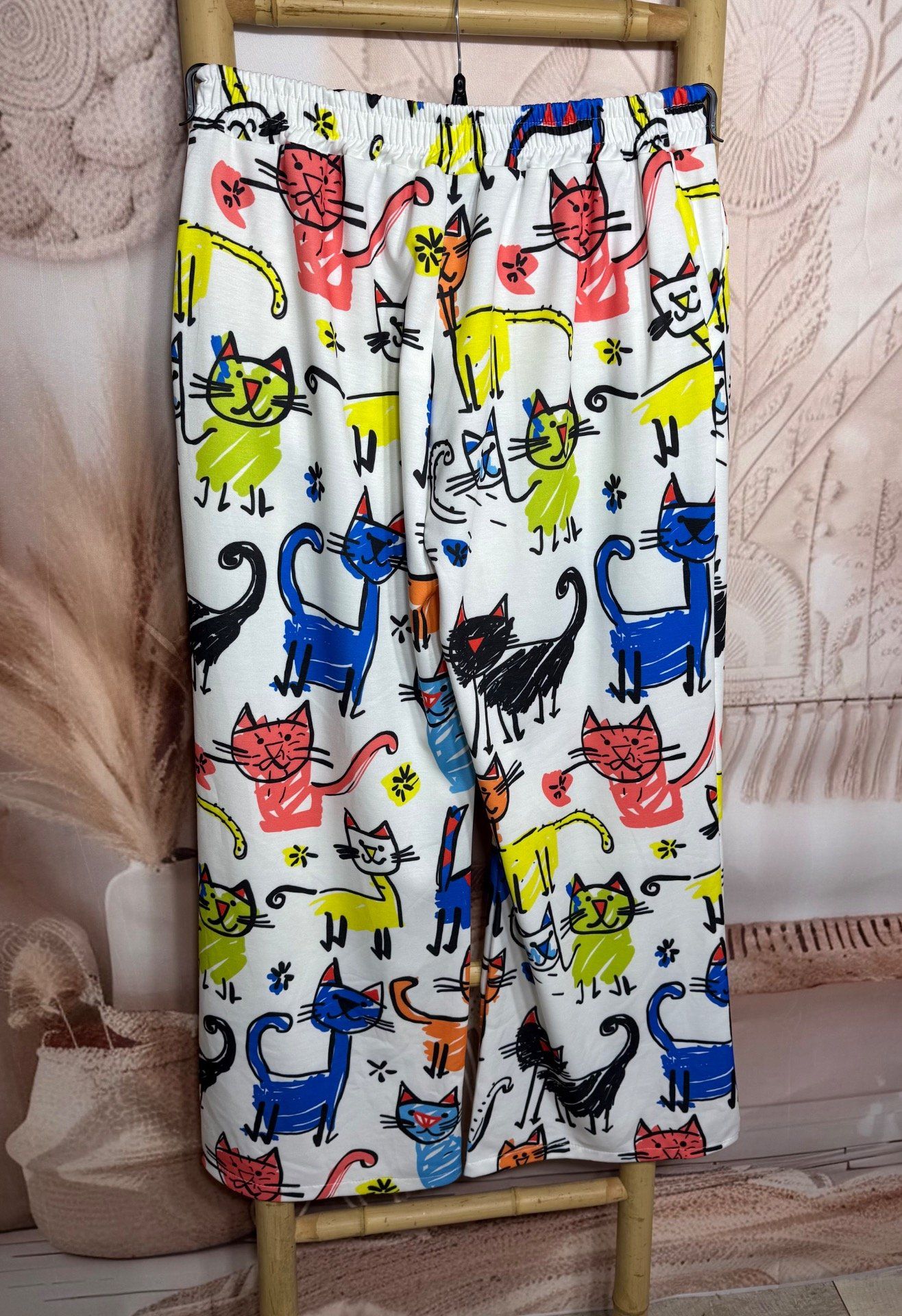 Pantalon palazzo blanc Les adorables Chats multicolores stretch ++++