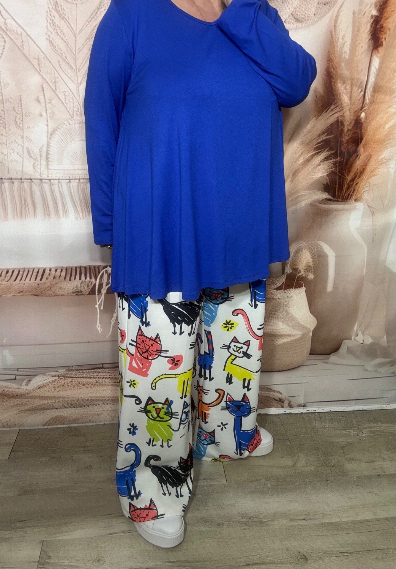 Pantalon palazzo blanc Les adorables Chats multicolores stretch ++++ du 40 au 52/54