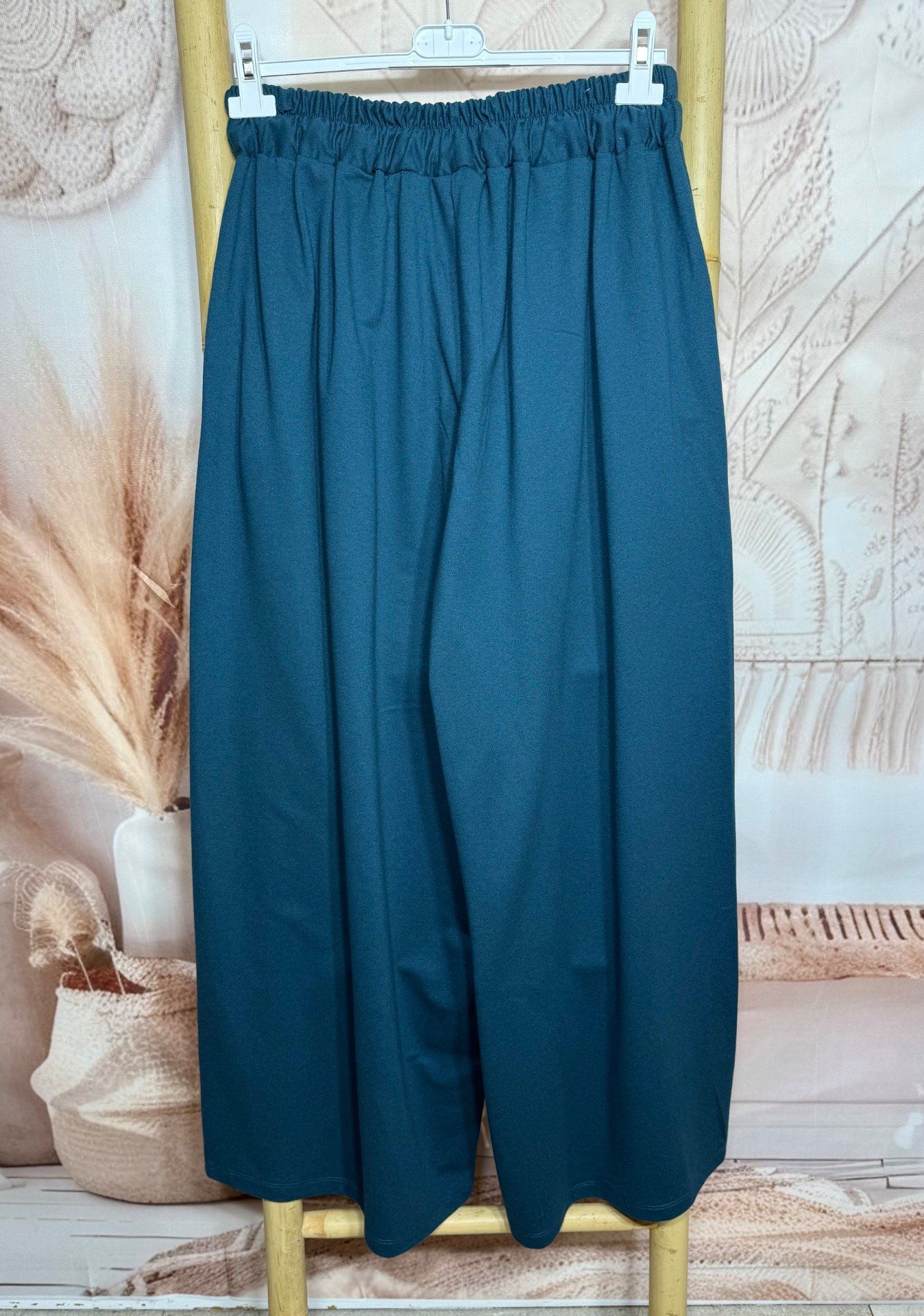 pantalon Palazzo bleu pétrole cuisses larges taille élastiquée confort +++