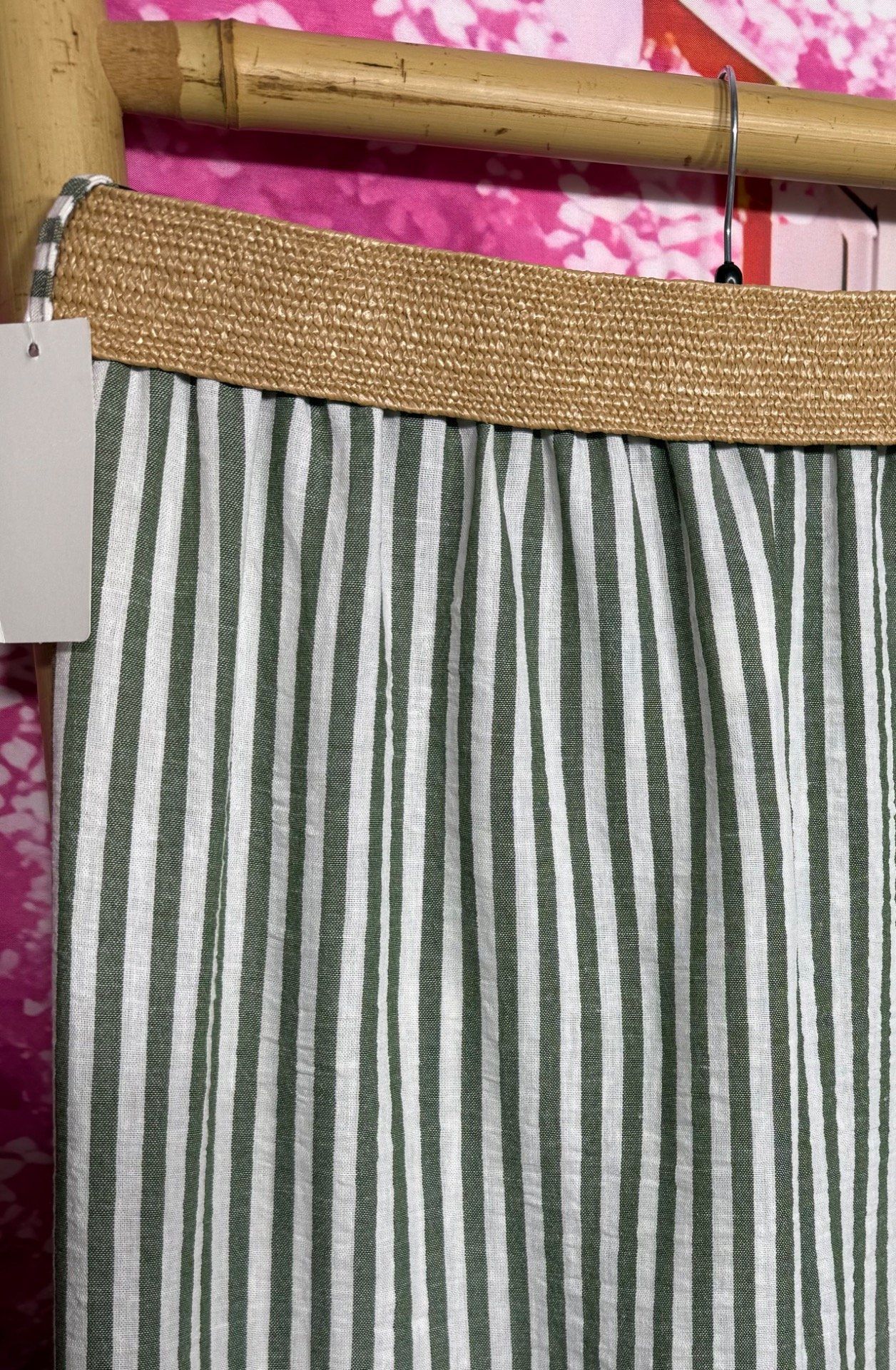 Pantalon palazzo écru rayé Kaki aspect Lin + ceinture offerte