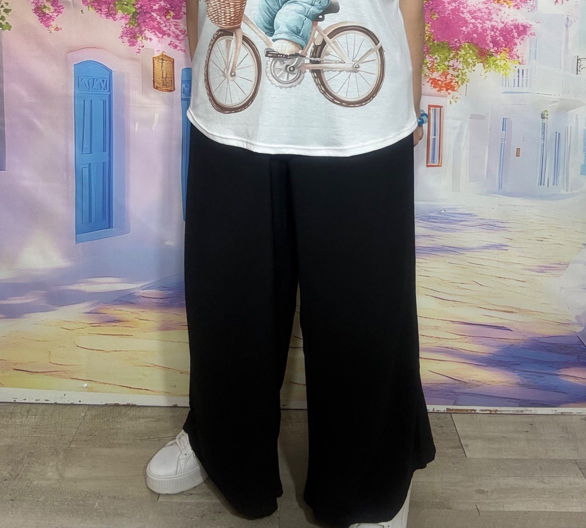 Pantalon palazzo fluide noir cuisses larges taille élastiquée Les Basiques du Dressing