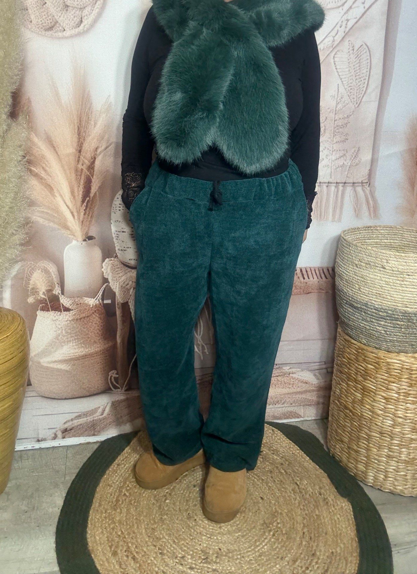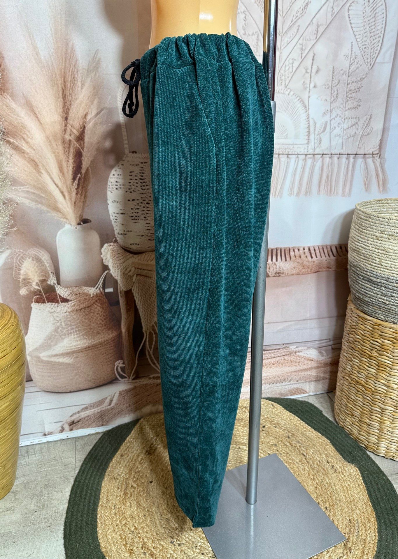 pantalon velours ras façon jogg "magique" vert bouteille confort ++++