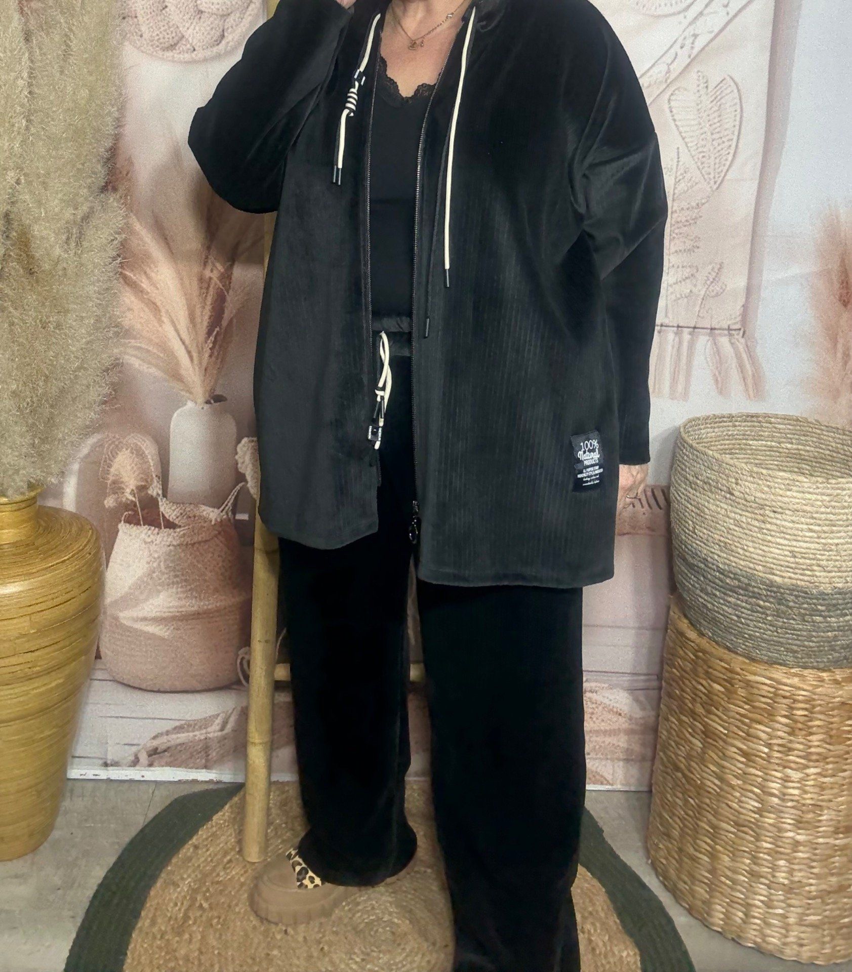 pantalon velours rayé façon jogg noir doublé confort ++++ du 40 au 50