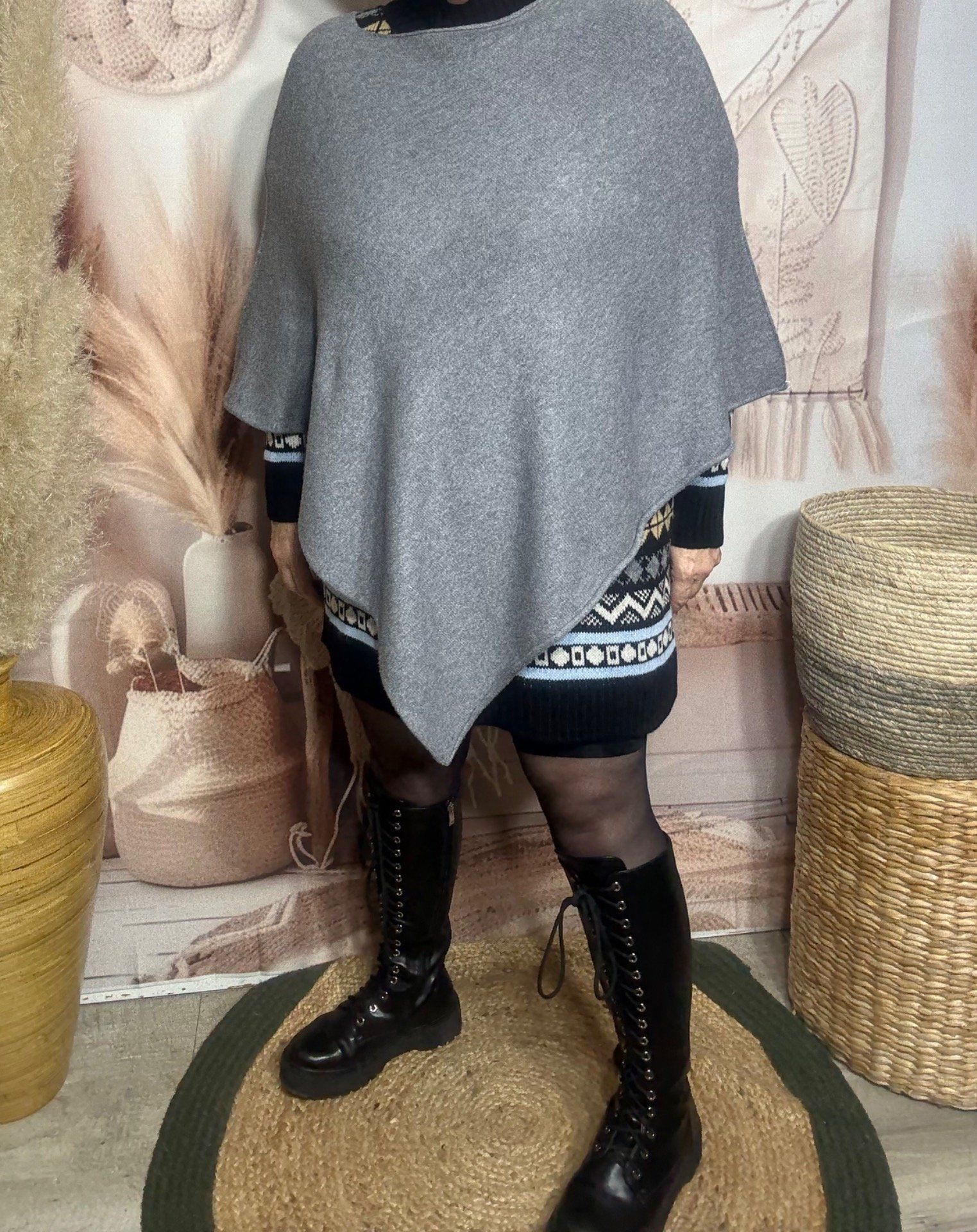 Poncho mi-long ou Chauffe-épaules SANS LAINE gris perle douceur ++++