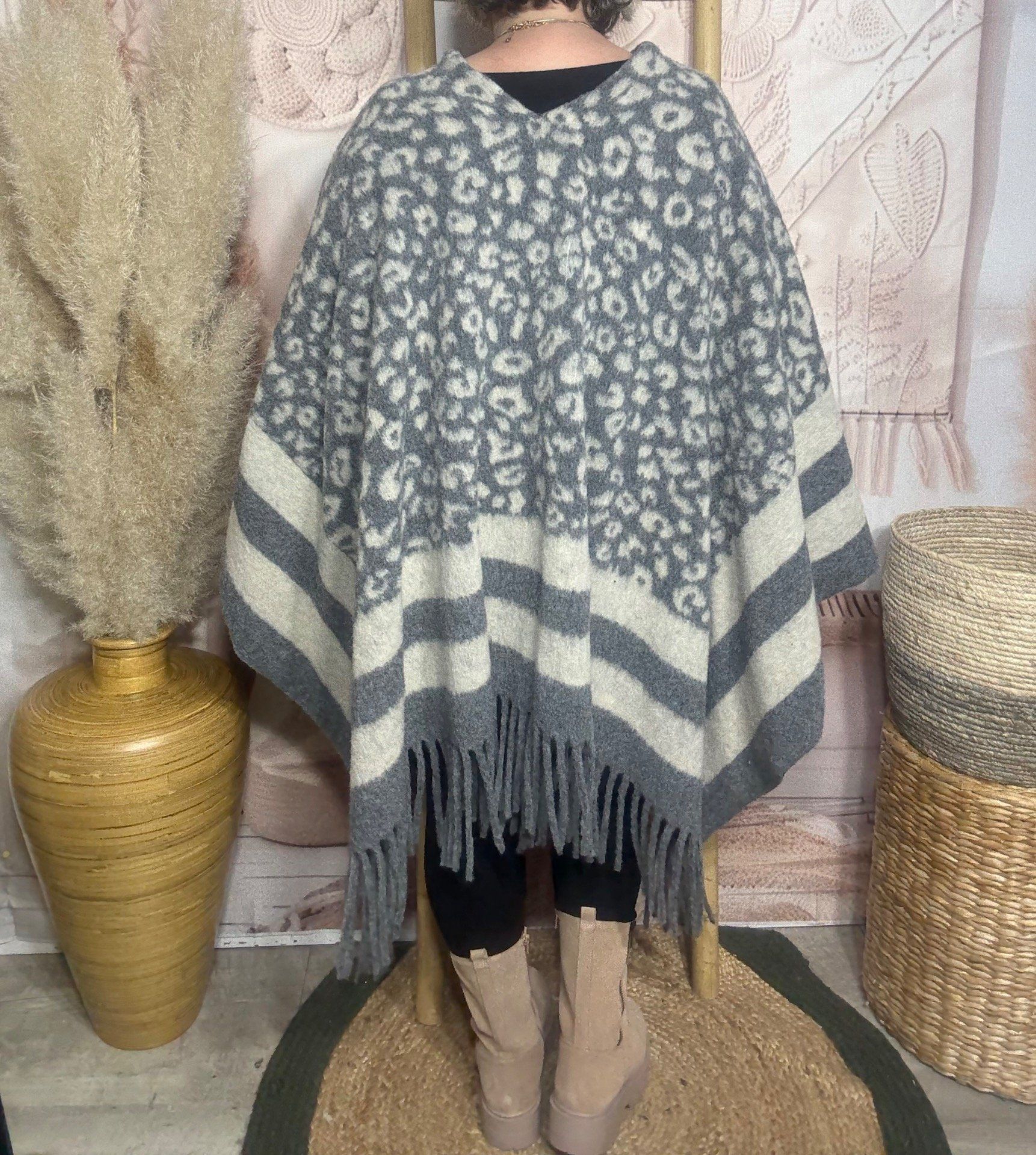 Poncho oversize SANS LAINE polaire Léopard gris perle et crème TOUTES TAILLES