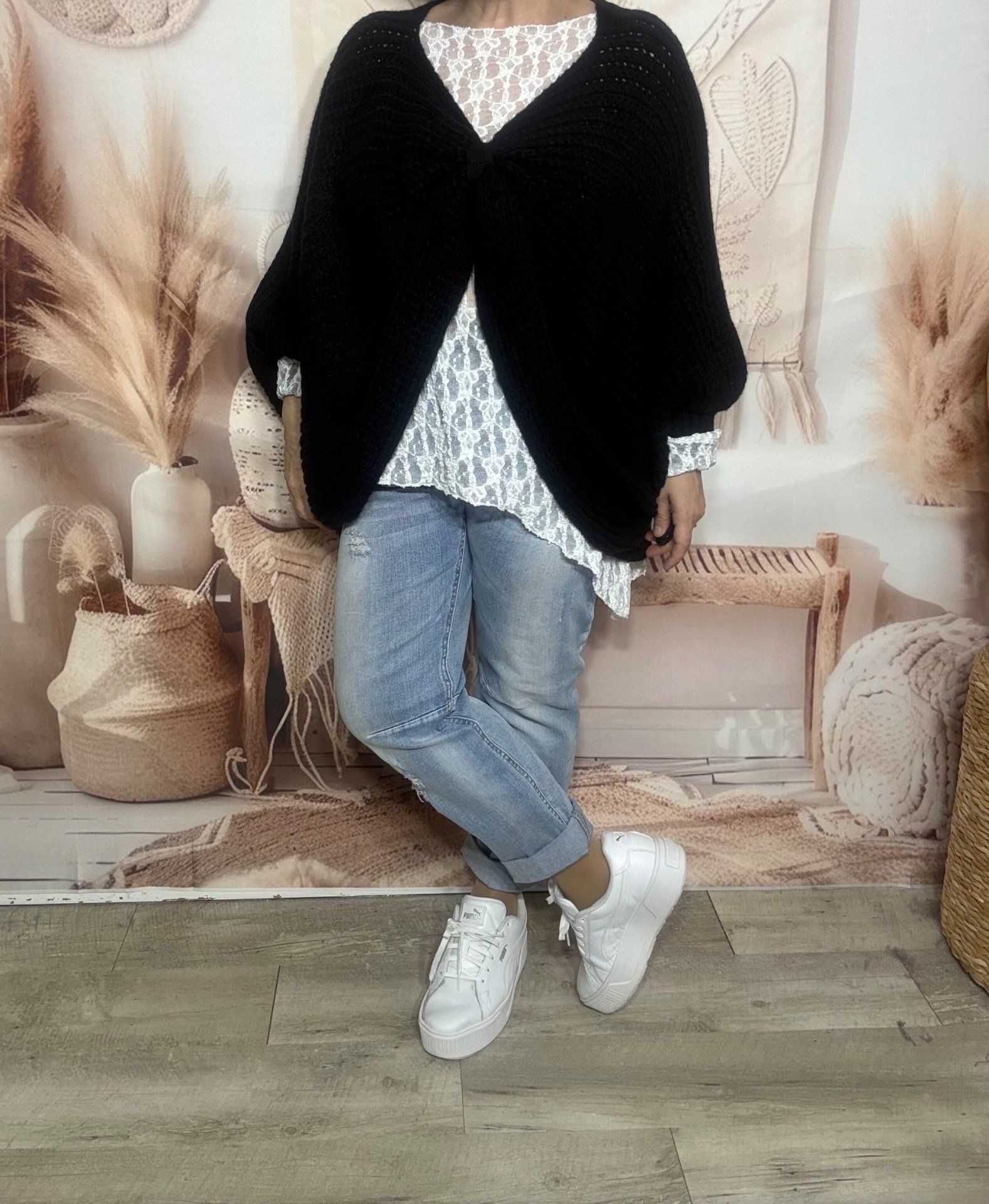 Pull ample façon Papillon manches chauve-souris noir douceur +++