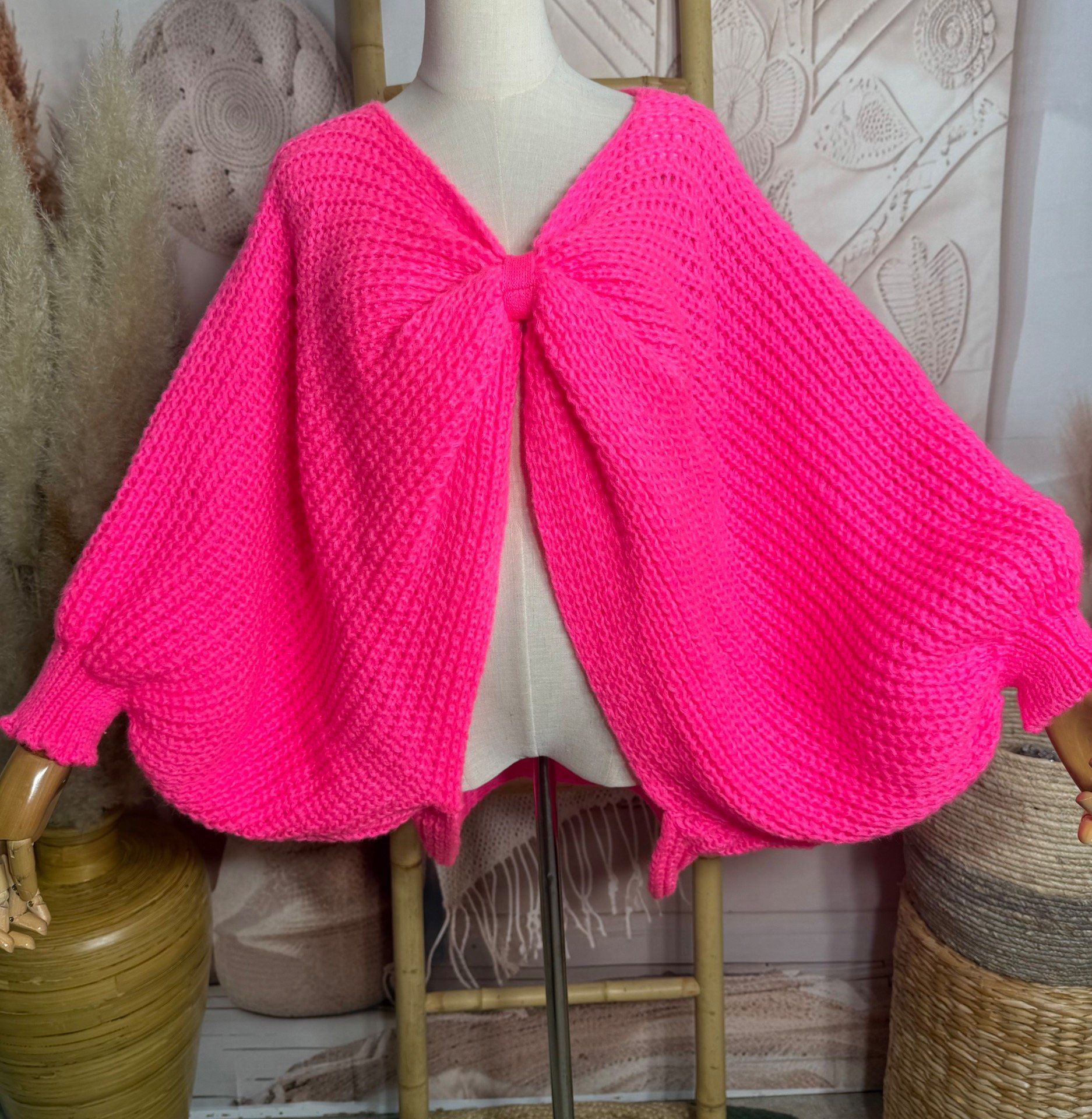 Pull ample façon Papillon manches chauve-souris rose vif douceur +++