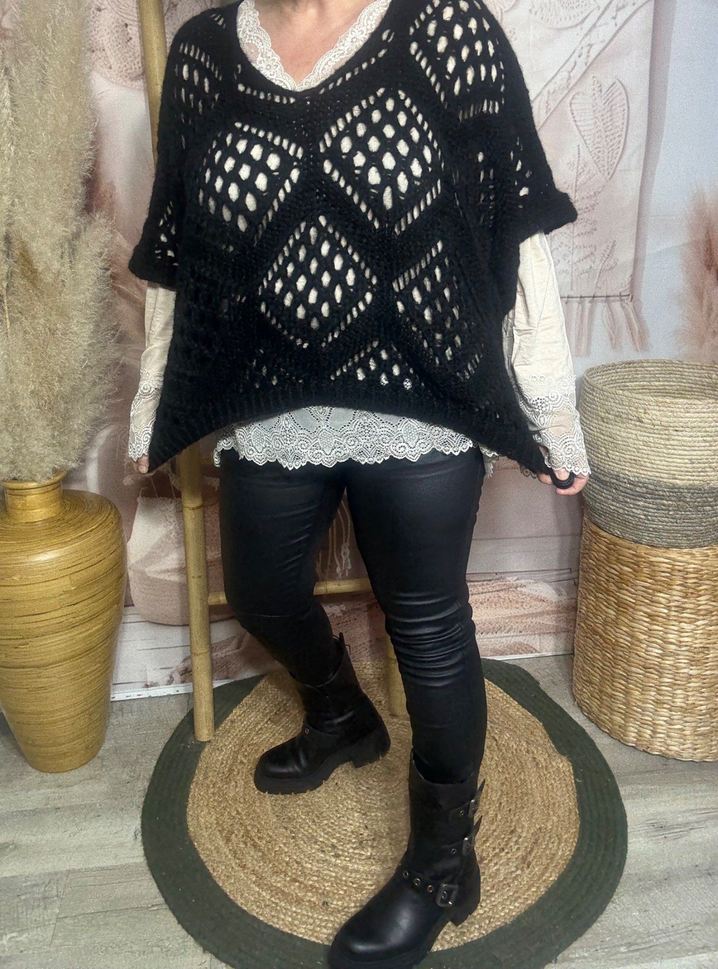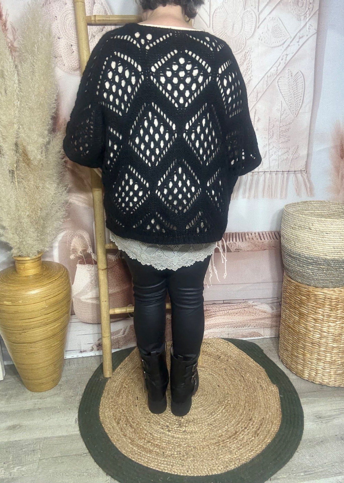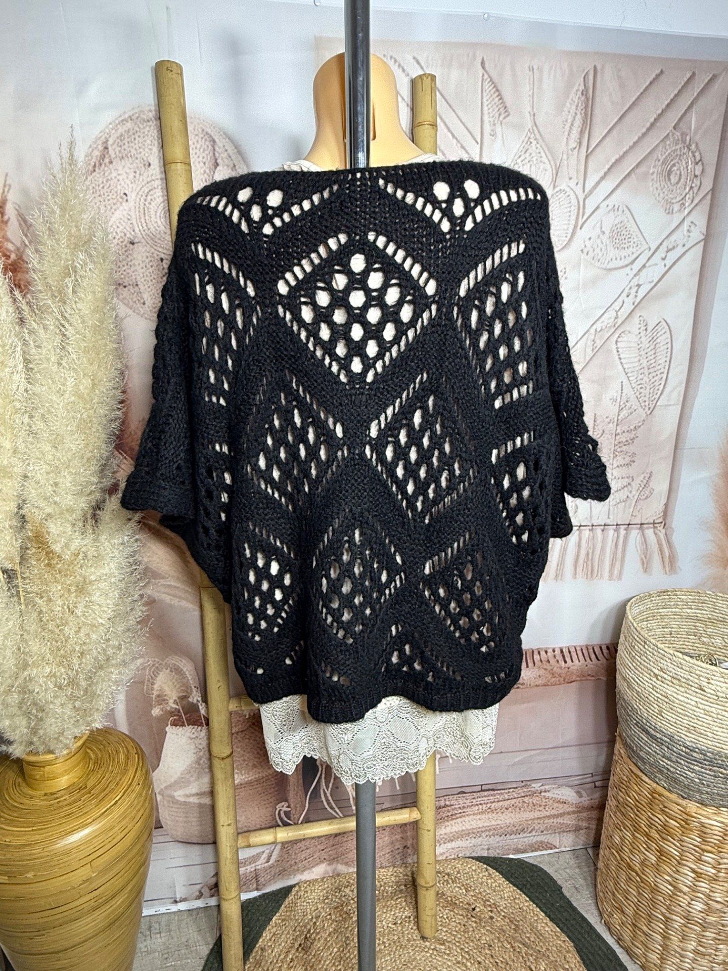 Pull asymétrique ample SANS LAINE maille crochet Bohème noir douceur ++ du 40 au 52