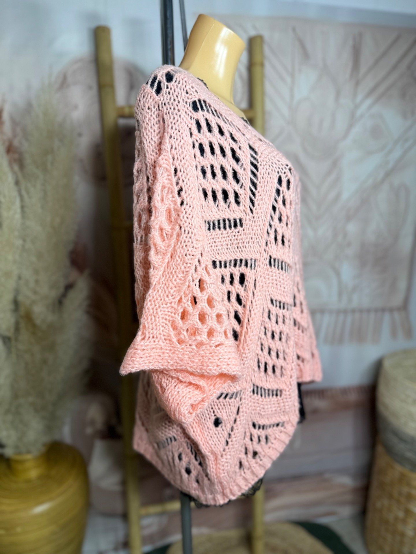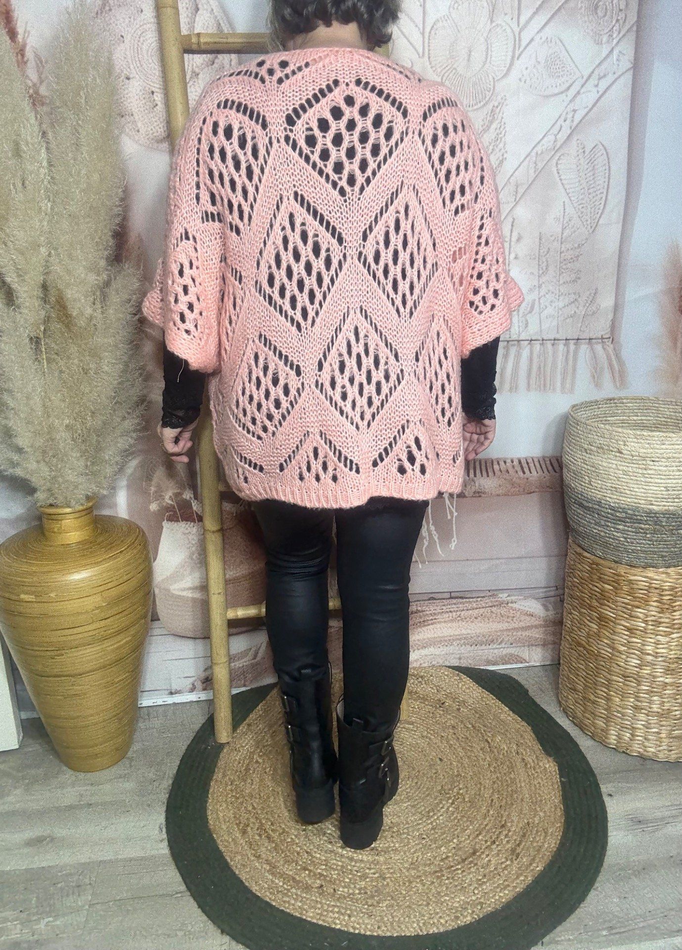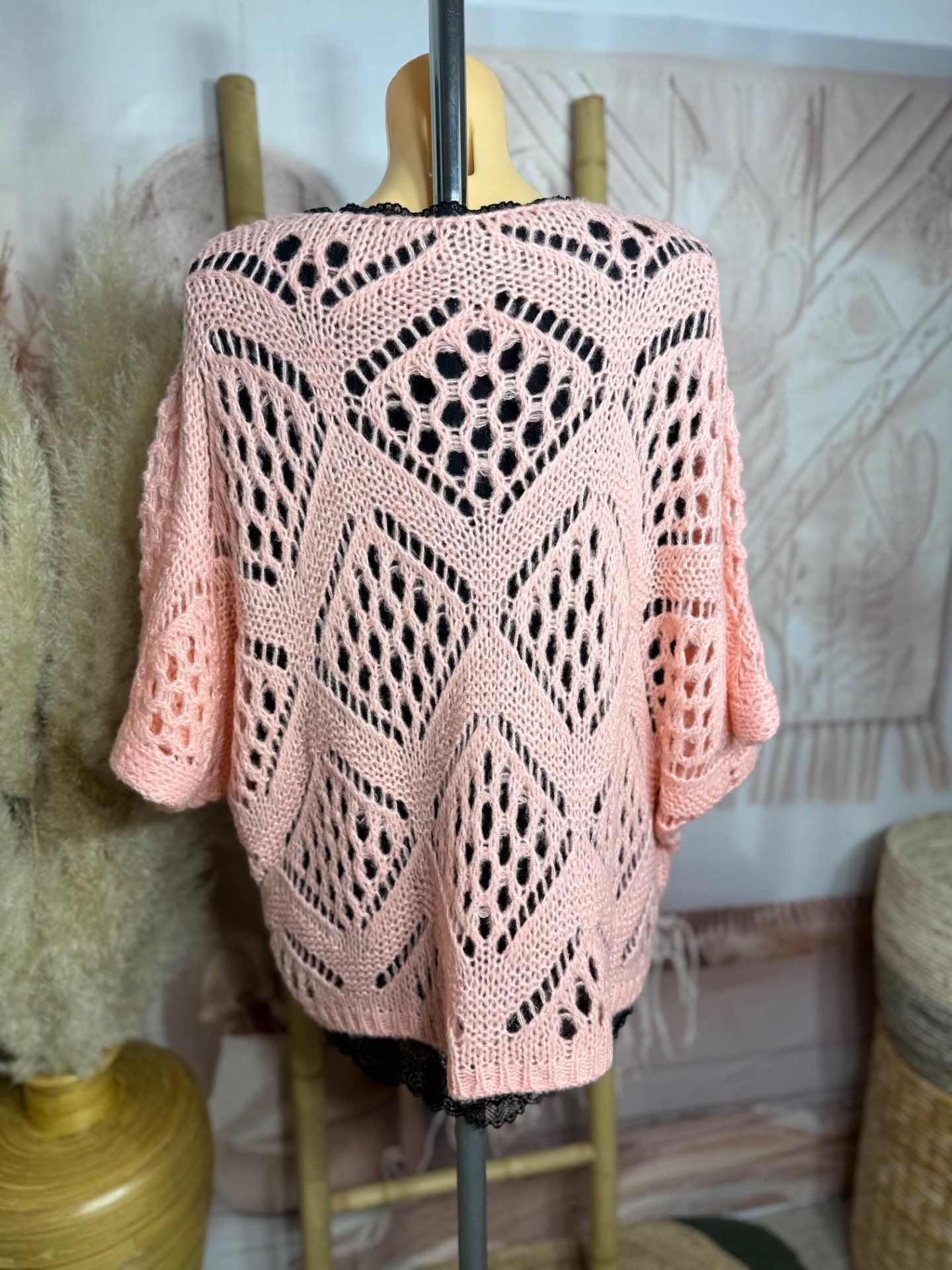 maille ajourée façon maille crochetée Bohème, manches courtes amples