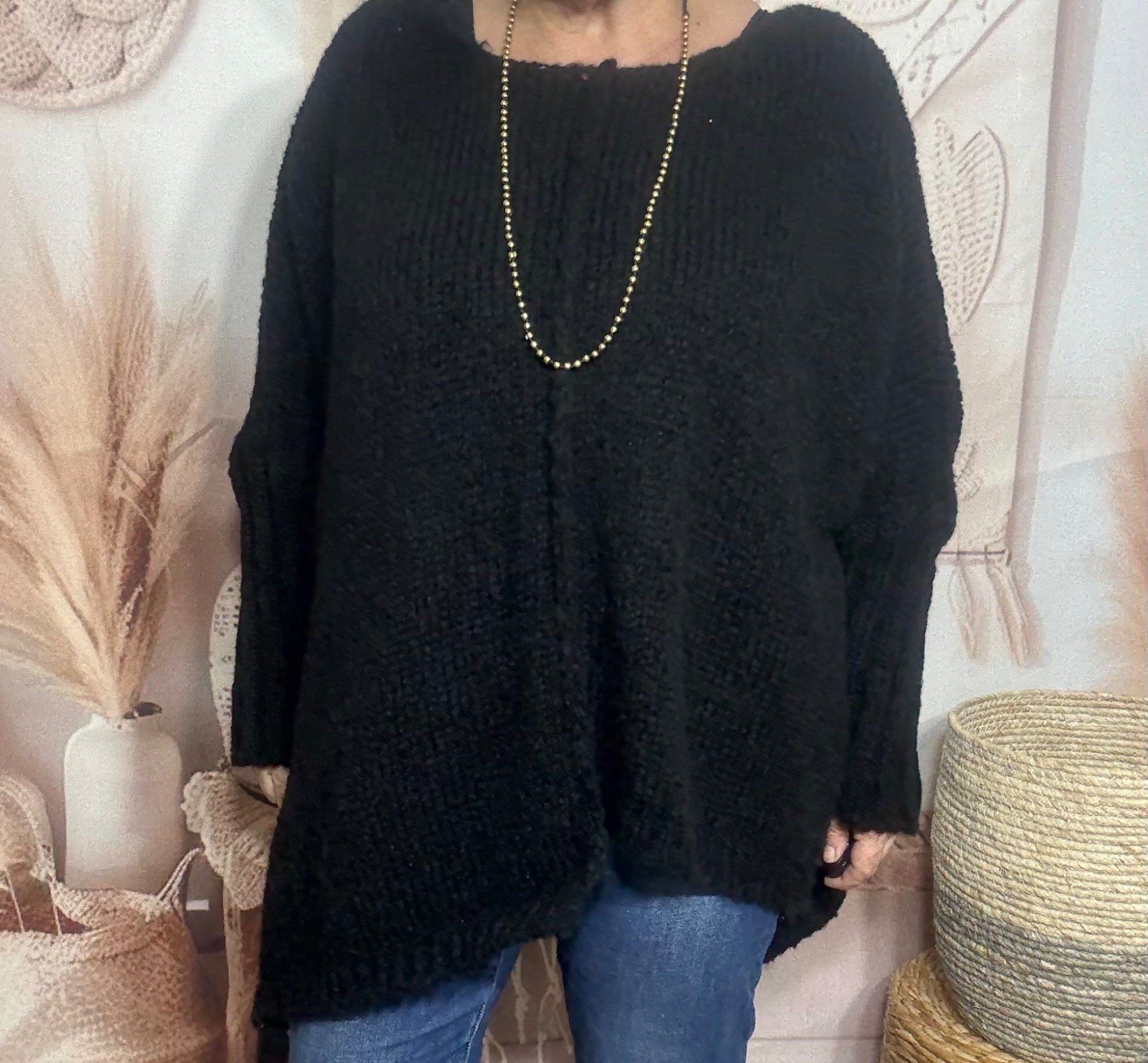 pull asymétrique oversize sans laine noir col V douceur +++ du 42 au 56/58