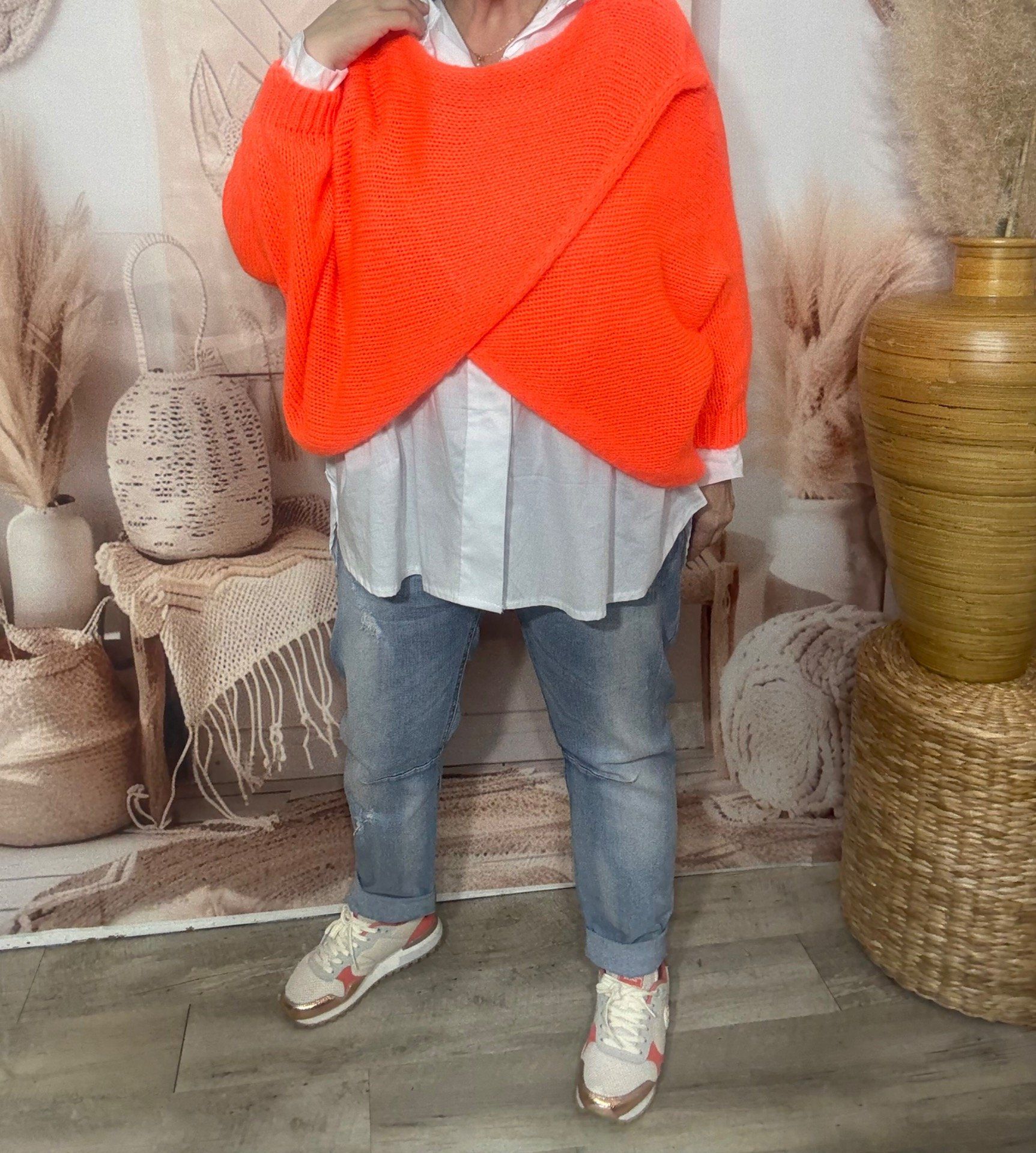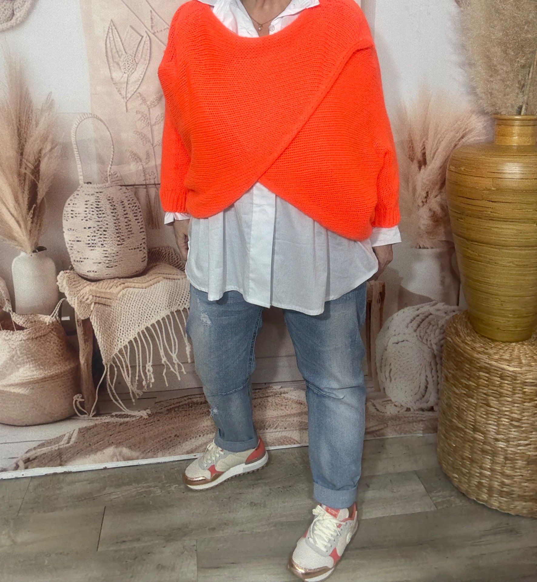 Pull court croisé orange douceur +++ ou en version "chauffe-épaule"