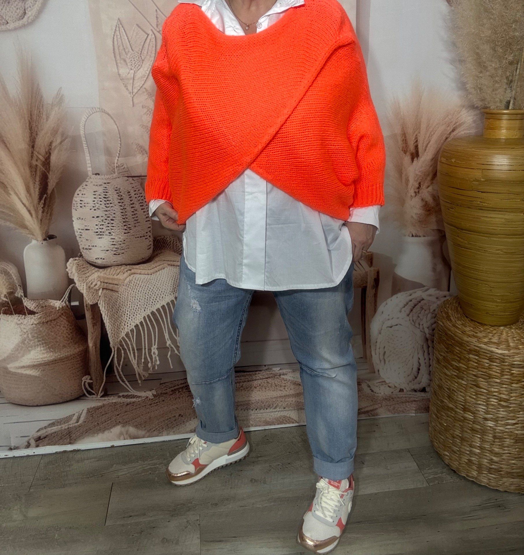 Pull court croisé orange douceur +++ (du 40 au 52) ou en version "chauffe-épaule" jusqu'au 58/60