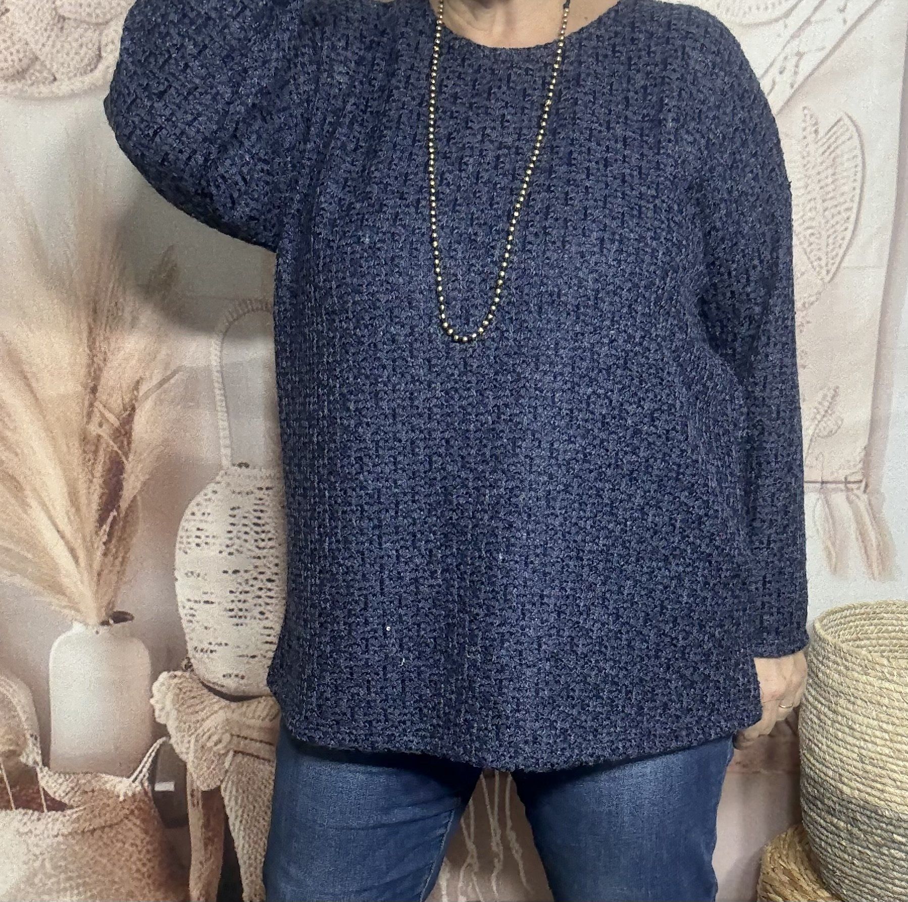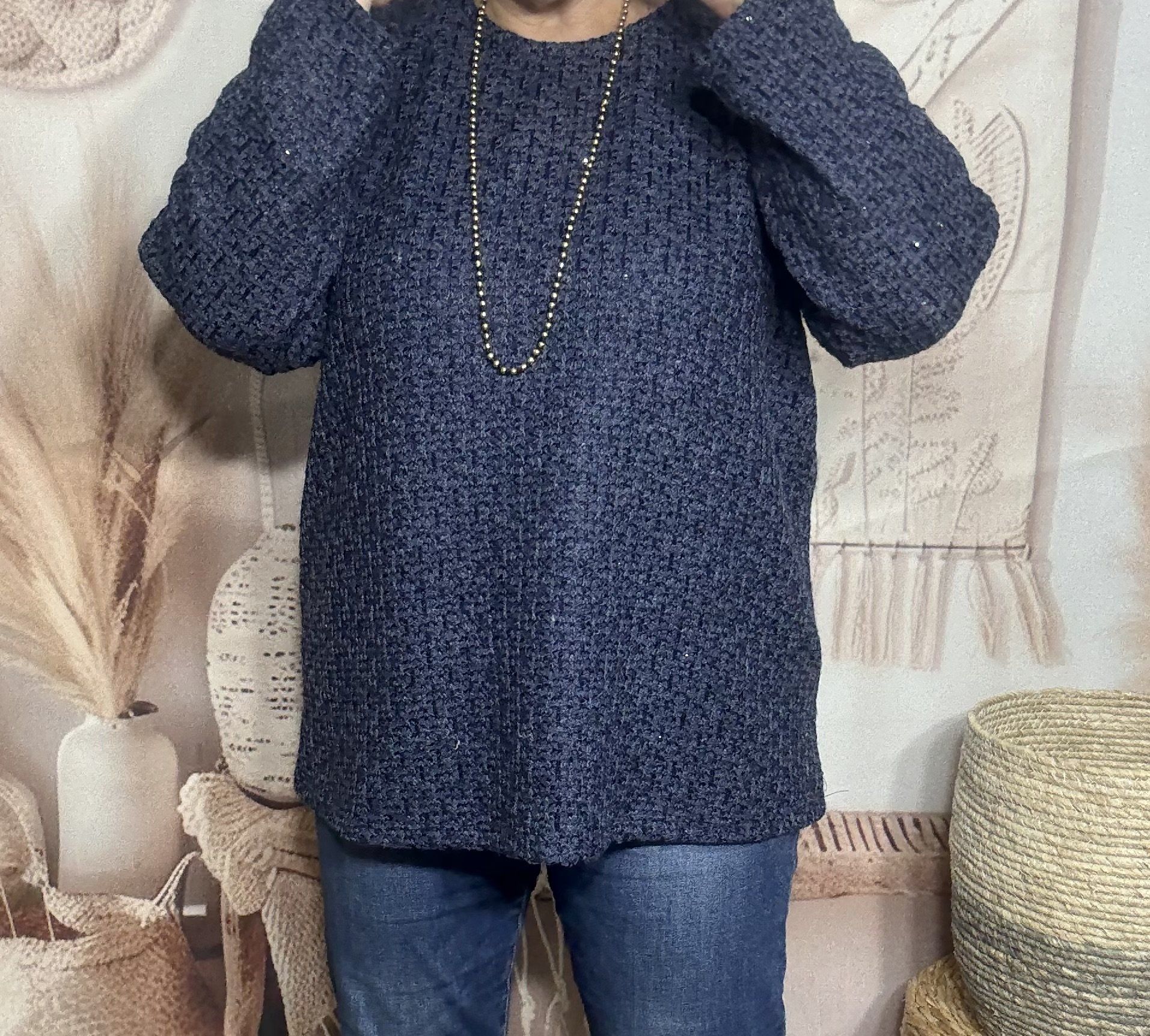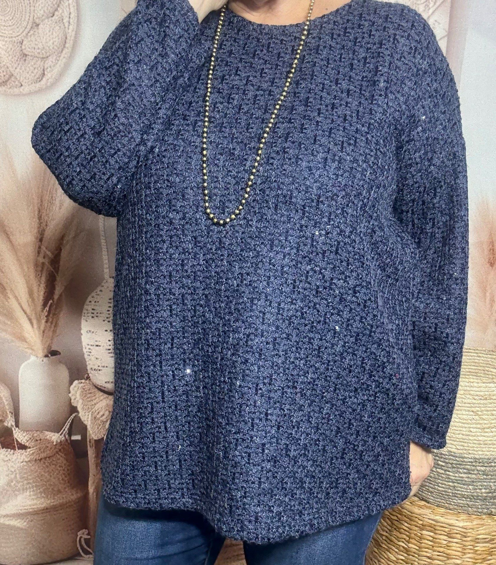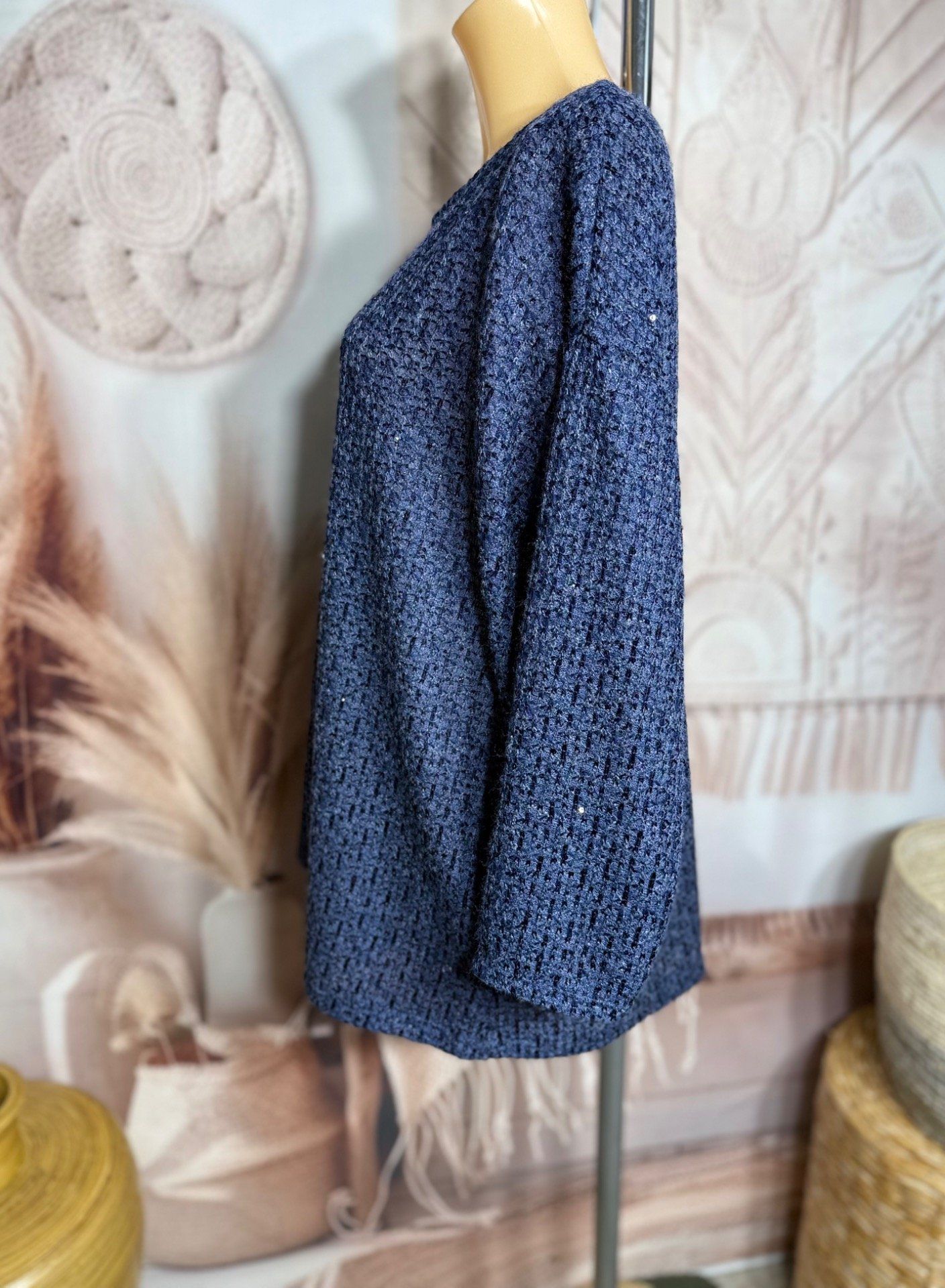 Pull fin marine paillettes et sequins marine brillants du 38 au 50