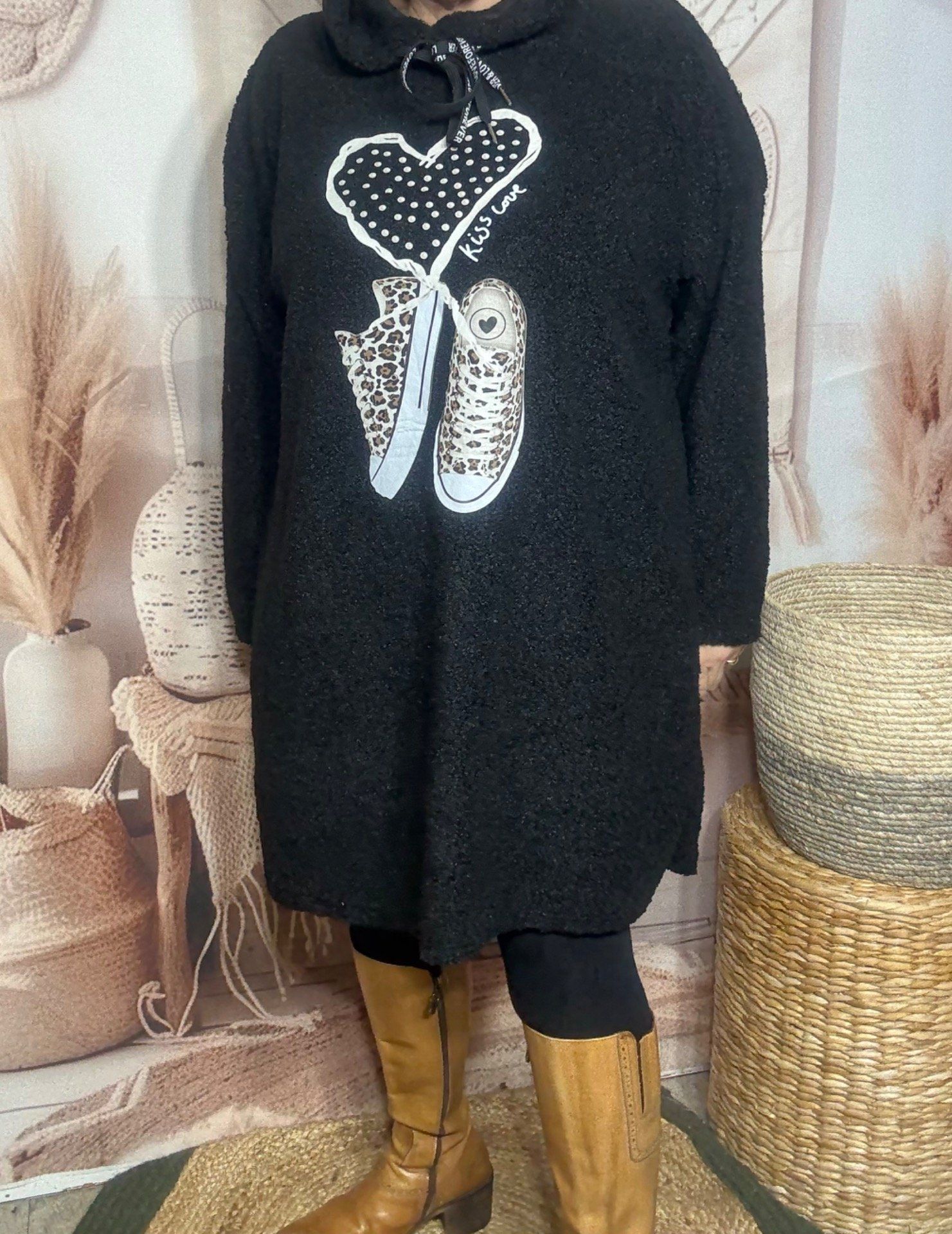 Robe à capuche moumoute noire Baskets Léopard coeur douceur +++ du 38 au 48/50