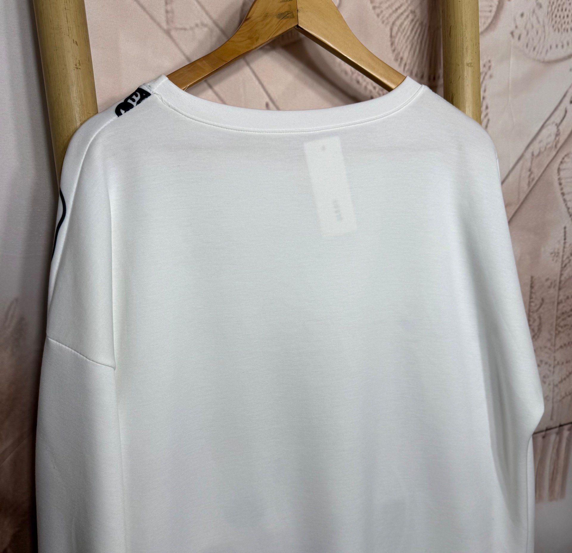 forme droite ample, manches longues extensibles et souples, col rond