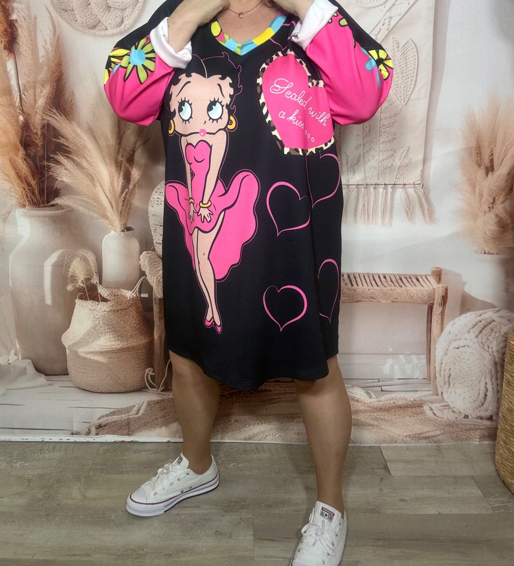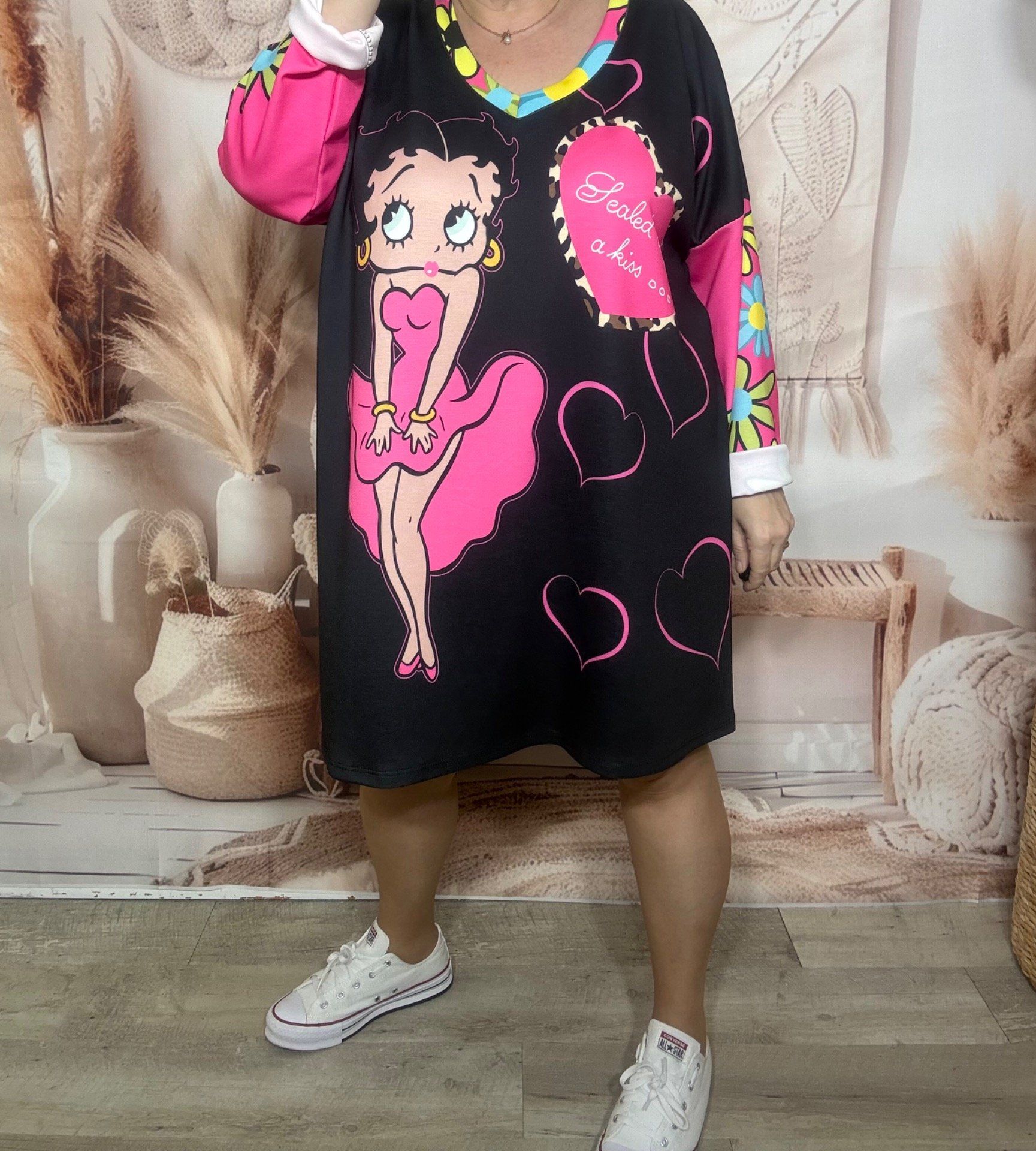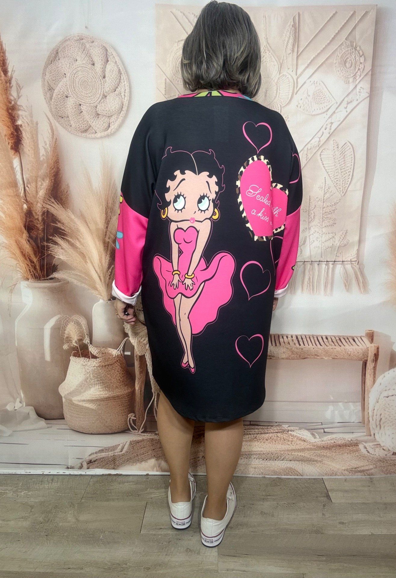 Robe ample noire Betty Boop Rétro US Pinup in Pink