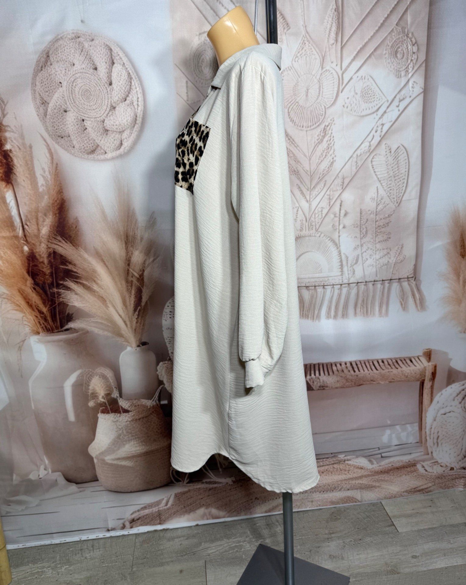 Robe Chemise ample bicolore beige Léopard camel caramel