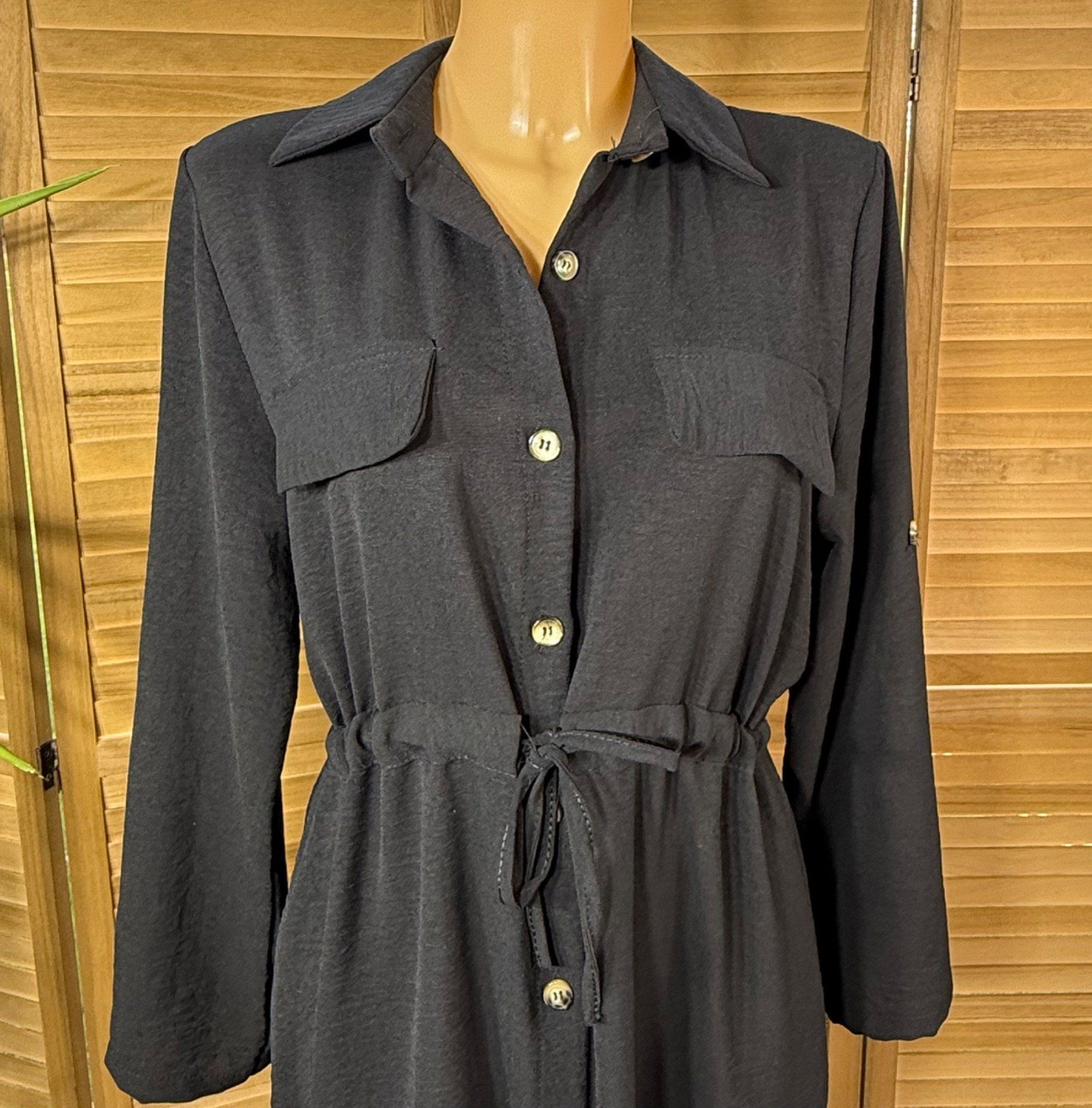 Robe chemise noire taille ajustable manches réglables