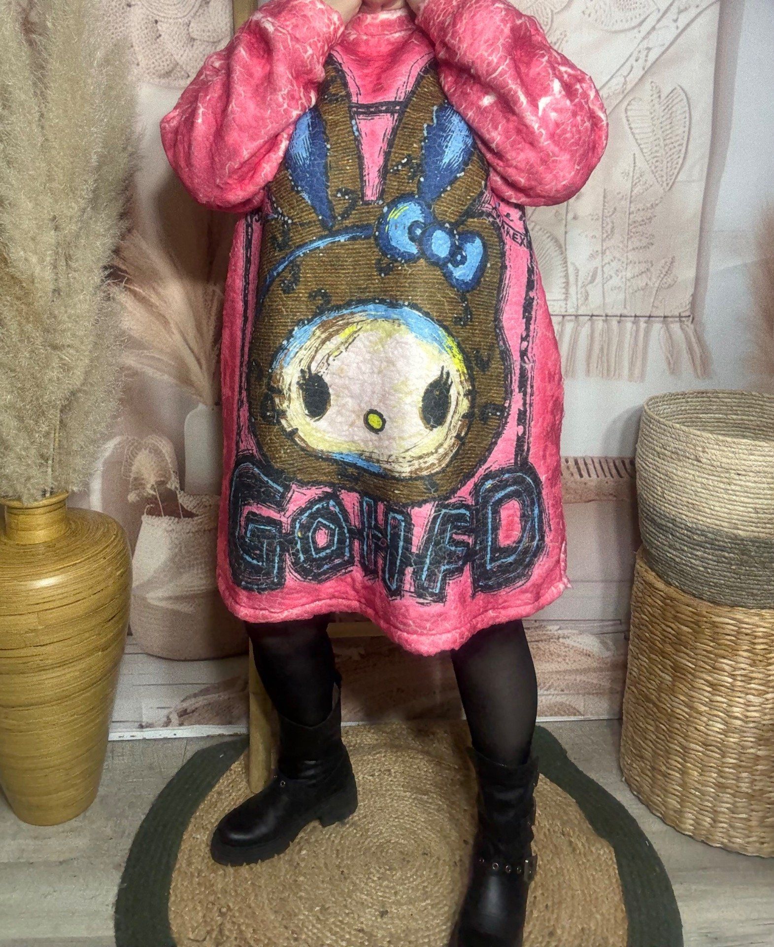 Robe courte ou Sweat long polaire duveteuse rose Little Pretty Rabbit