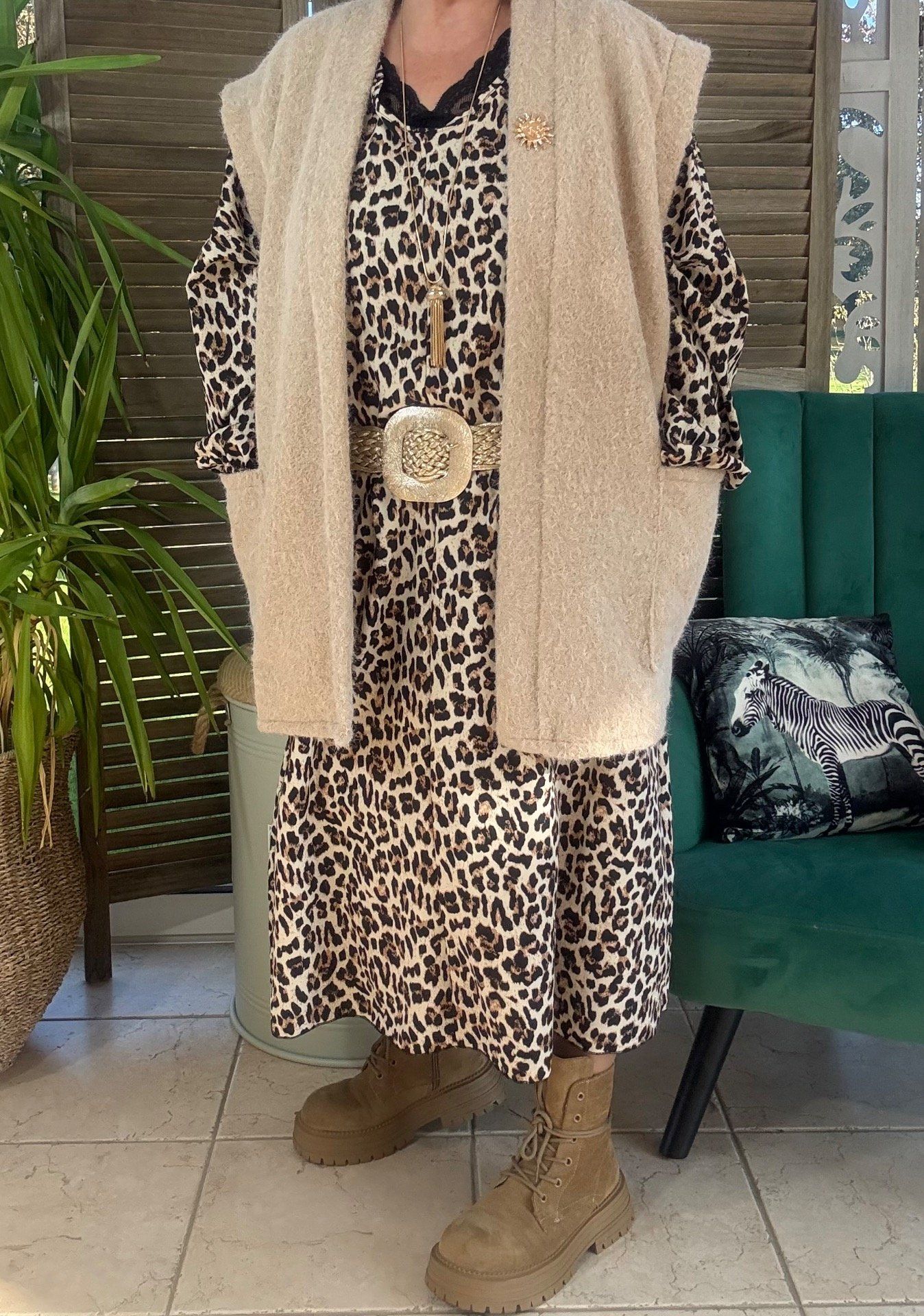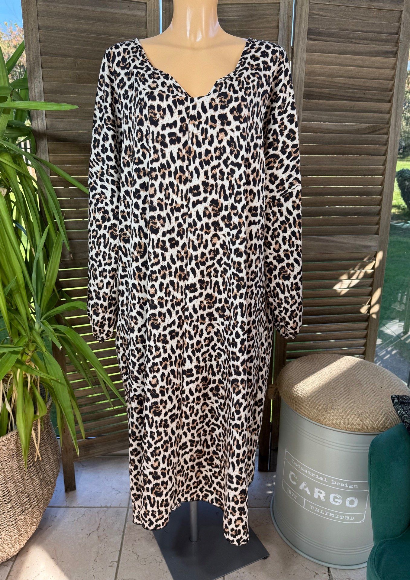Robe longue oversize Léopard caramel beige noir du 42 au 52