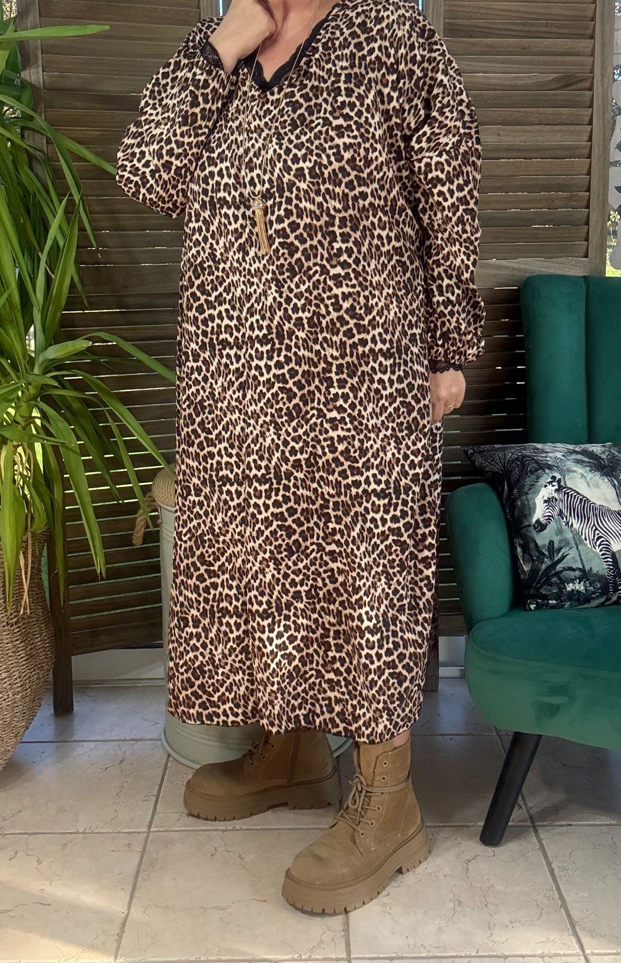 Robe longue oversize Léopard choco noir beige du 42 au 52