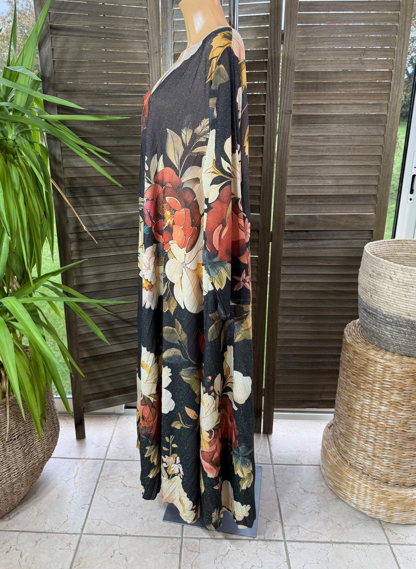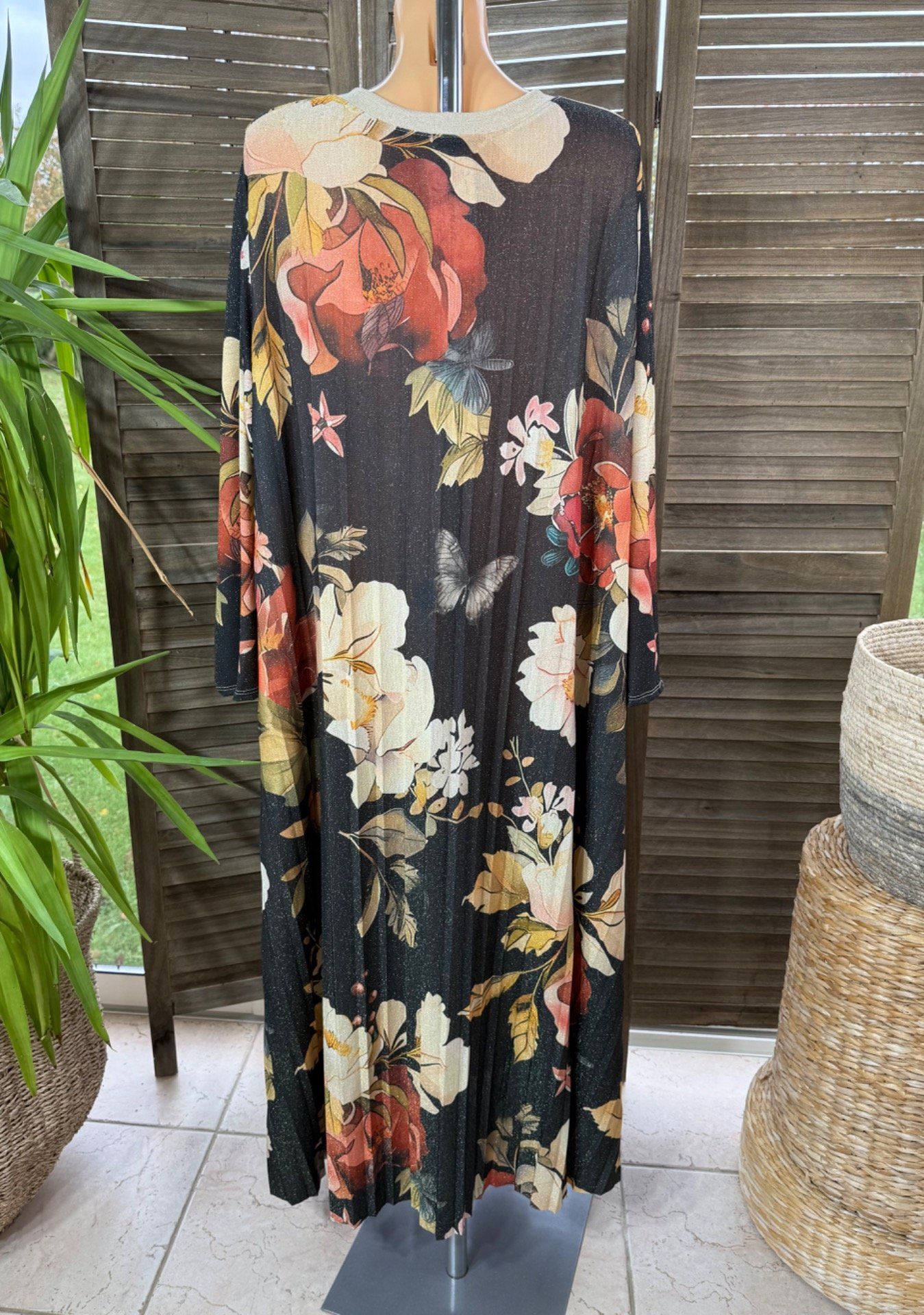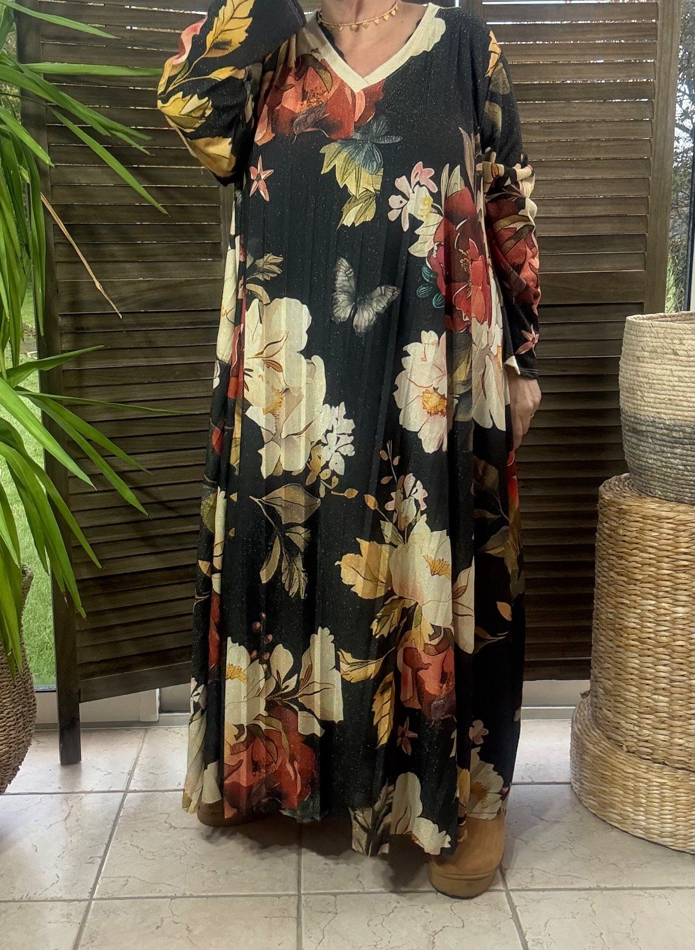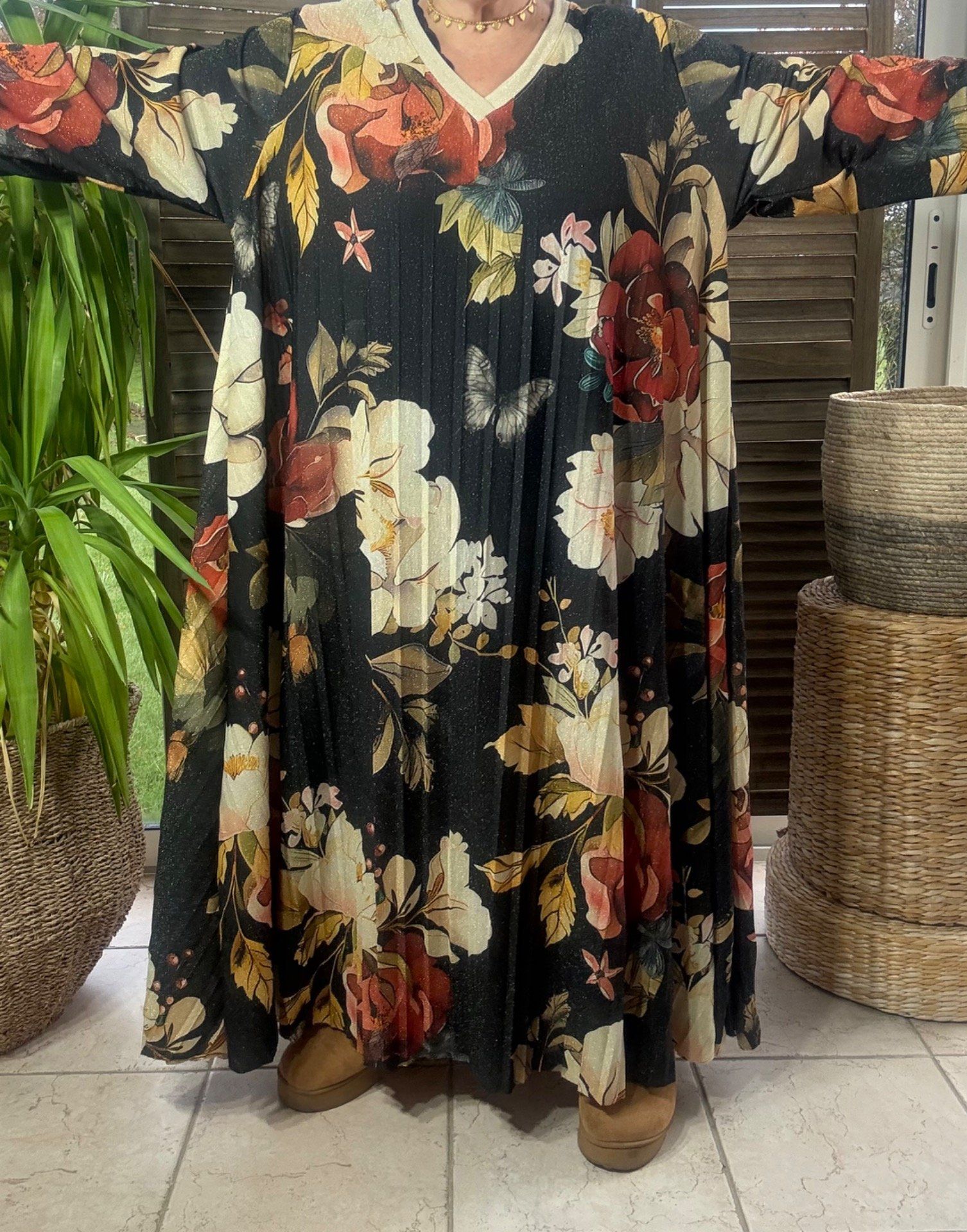 Robe longue trapèze plissée Les Fleurs d'Automnes Lurex pailleté doré du 42 au 58/60